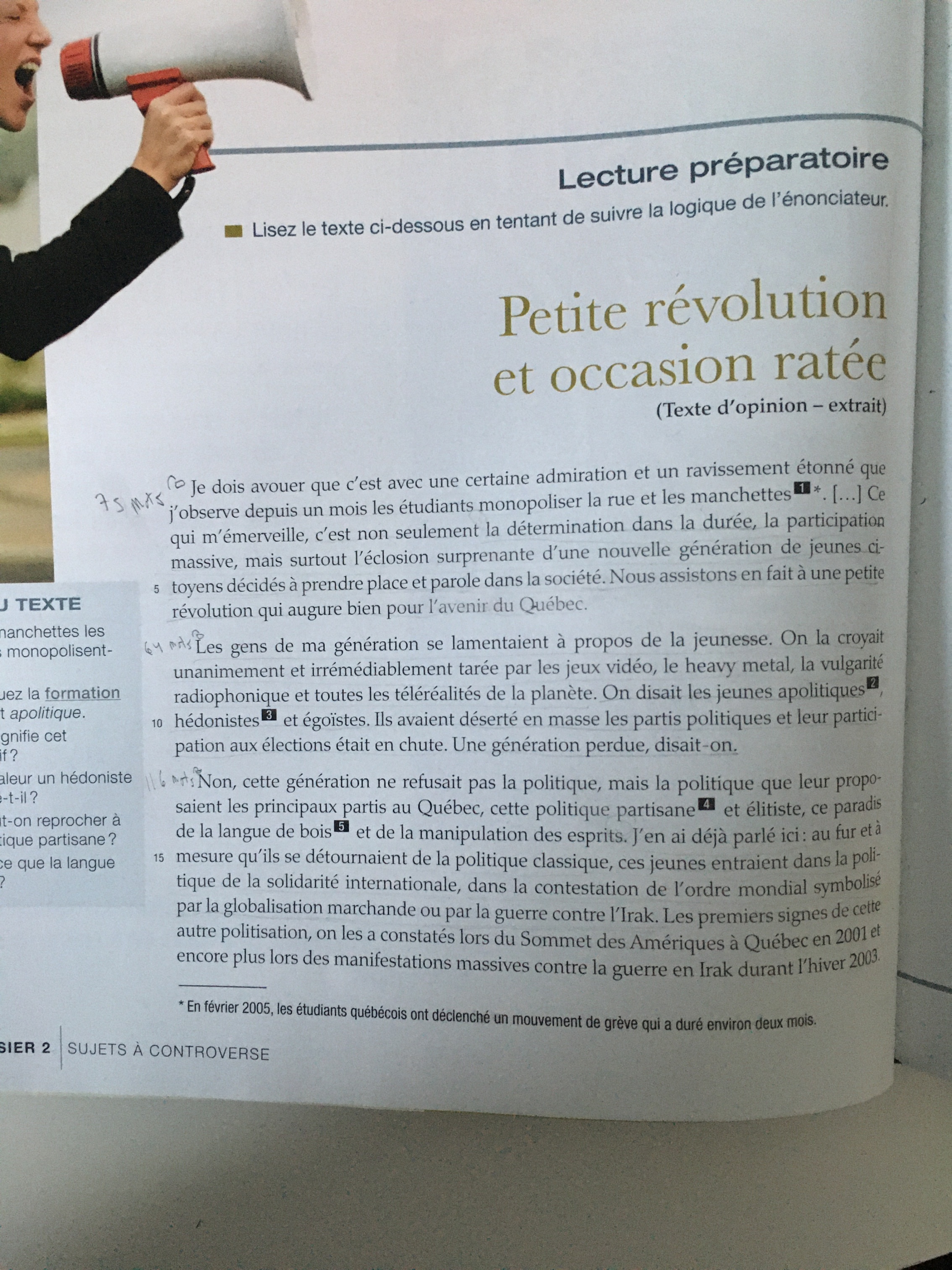Secondaire 5 • 3aJ’ai un text d’opinion à lire et à trouver les arguments (au moins trois) et il faut que je trouve des justifications aussi j’ai lu le texte et je crois que c’est les bons arguments que j’ai trouvé mais je ne suis pas sûr et je ne comprends pas vraiment le texte à partir des arguments