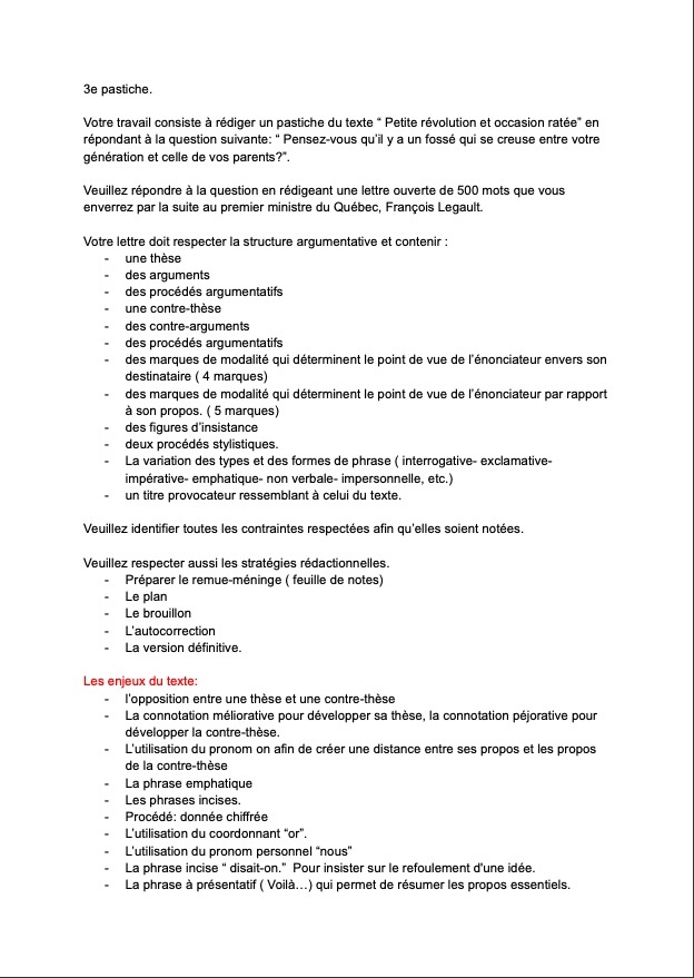 Secondaire 1 • 3aje comprend la technique AEI ou REP en francais pouvais vous maider sil vous pait