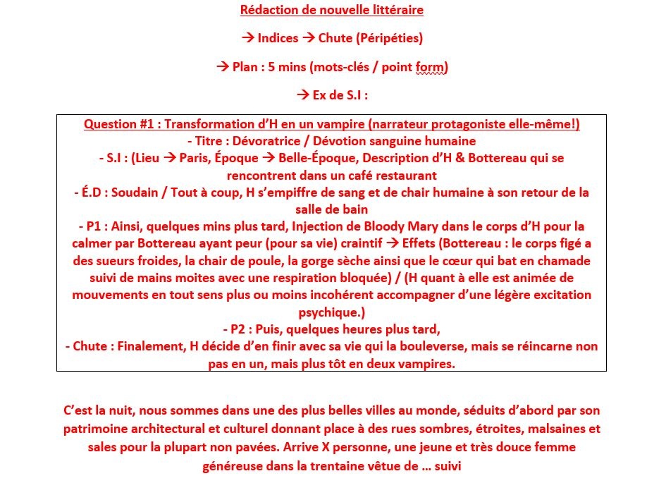 J'aurais besoin d'aide avec cette rédaction de nouvelle littéraire.