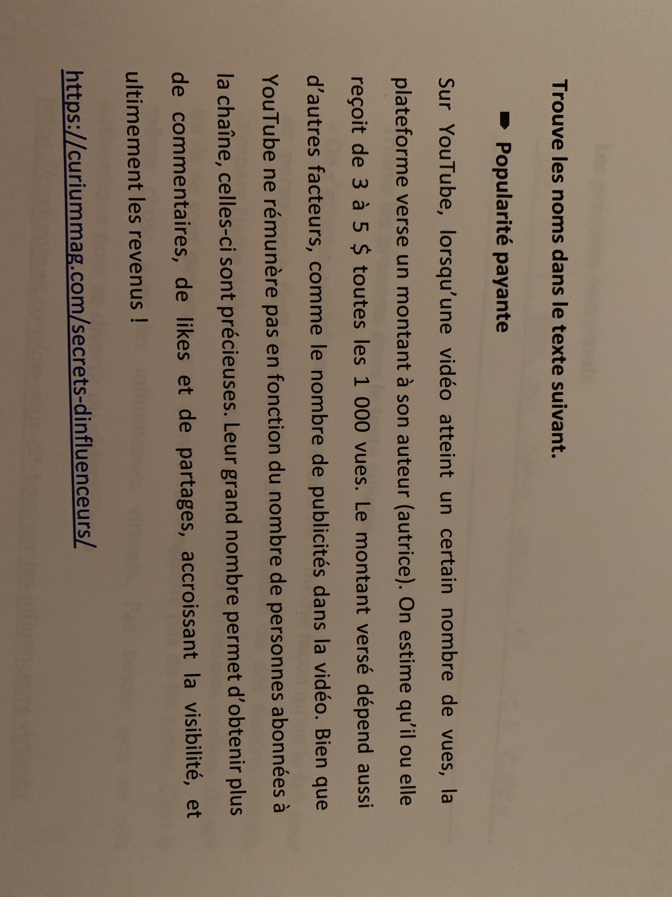 Secondaire 1 • 3aBonjour j’ai besoin d’aide avec mon devoir de français je dois trouver les noms dans le texte suivant