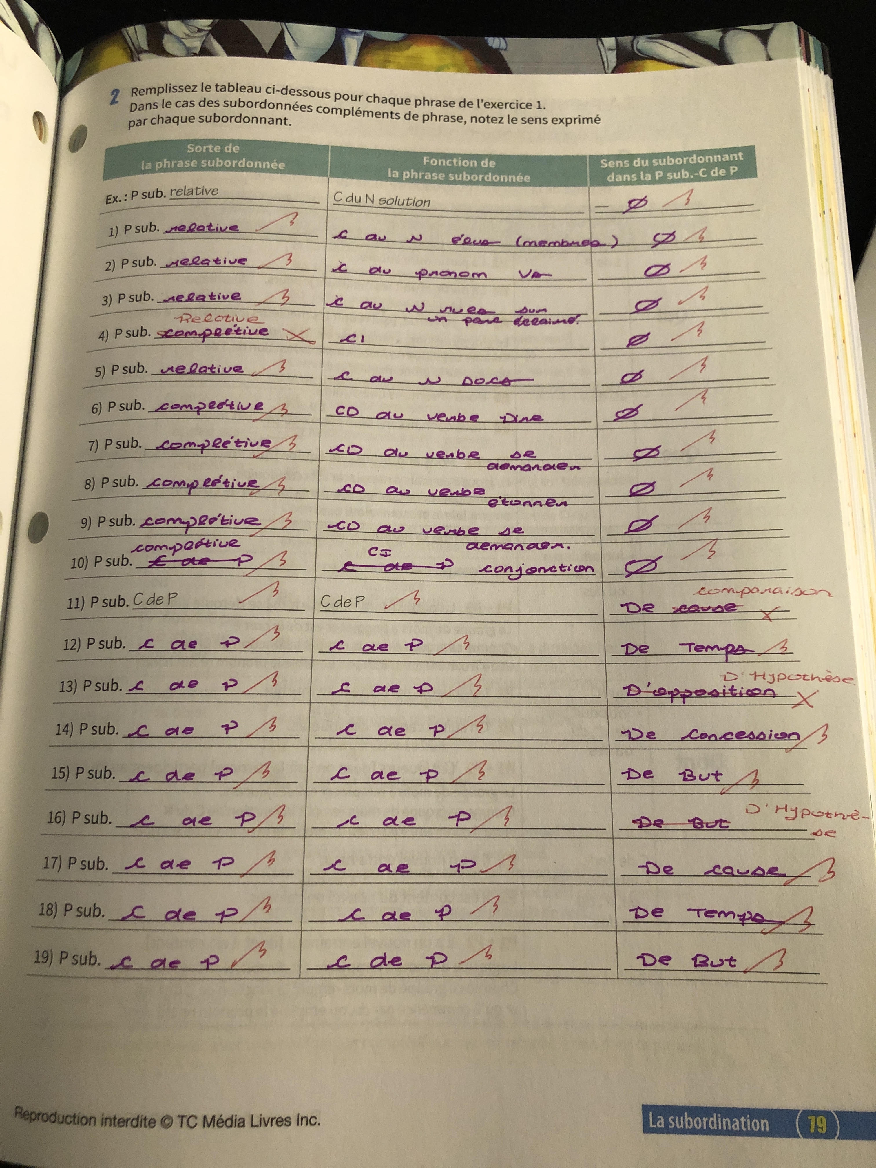 J'ai manqué une certaine partie de la correction de cette page, donc si Alloprof pourrait svp me les valider ça serait gentille. (C'est juste la partie fonction de la phrase subordonnée des numéros un à dix.)