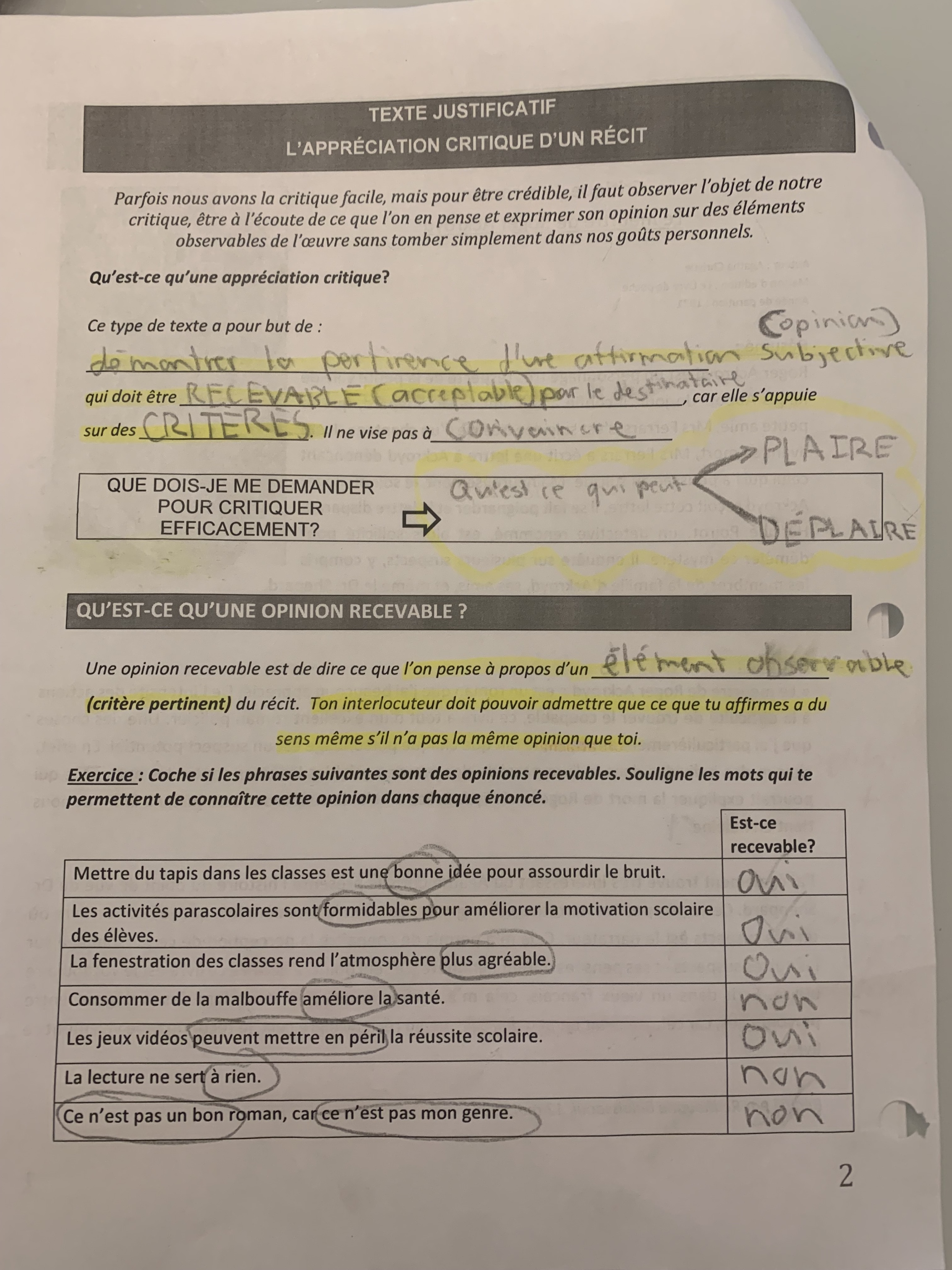 Je ne comprends pas l’opinion recevable. Pouvez-vous m’expliquer?L’exemple du jeux vidéo et de la malbouffe est un fait pourquoi un est oui et l’autre non? Et les autres exemples aussi je comprends pas la différence.
