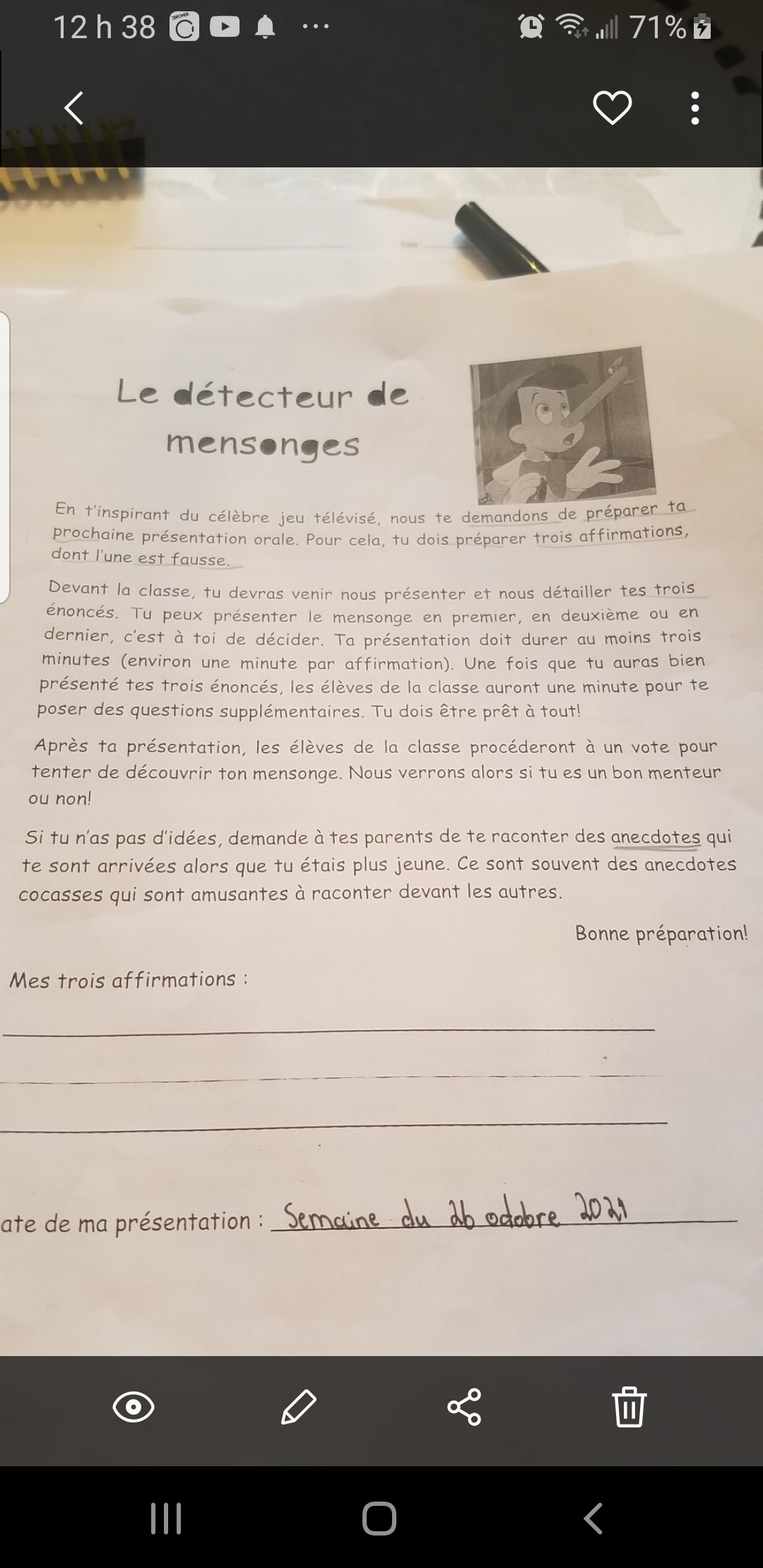 Primaire 6 • 4aSavait vous comment faire pour comprendre ce travail et comment je trouve des affirmations j'ai essayé de regarder sur Internet mais j'ai pas compris.Merci