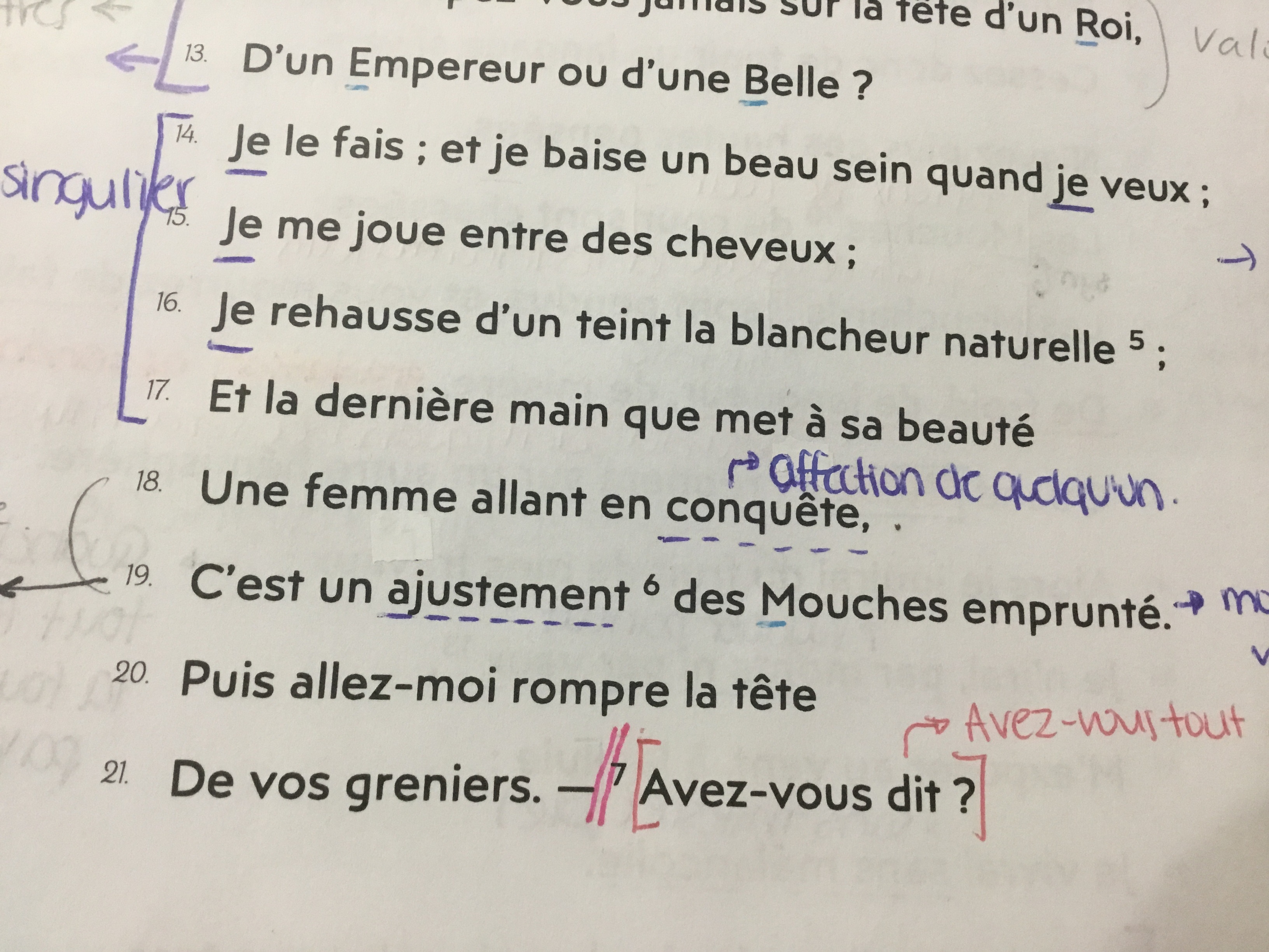 Secondaire 5 • 4aBonjour, au vers 18 et 19, je ne sais pas c’est quelle figure de style. De ce que j’ai compris, à la place de dire grain de beauté, on dit une mouche.