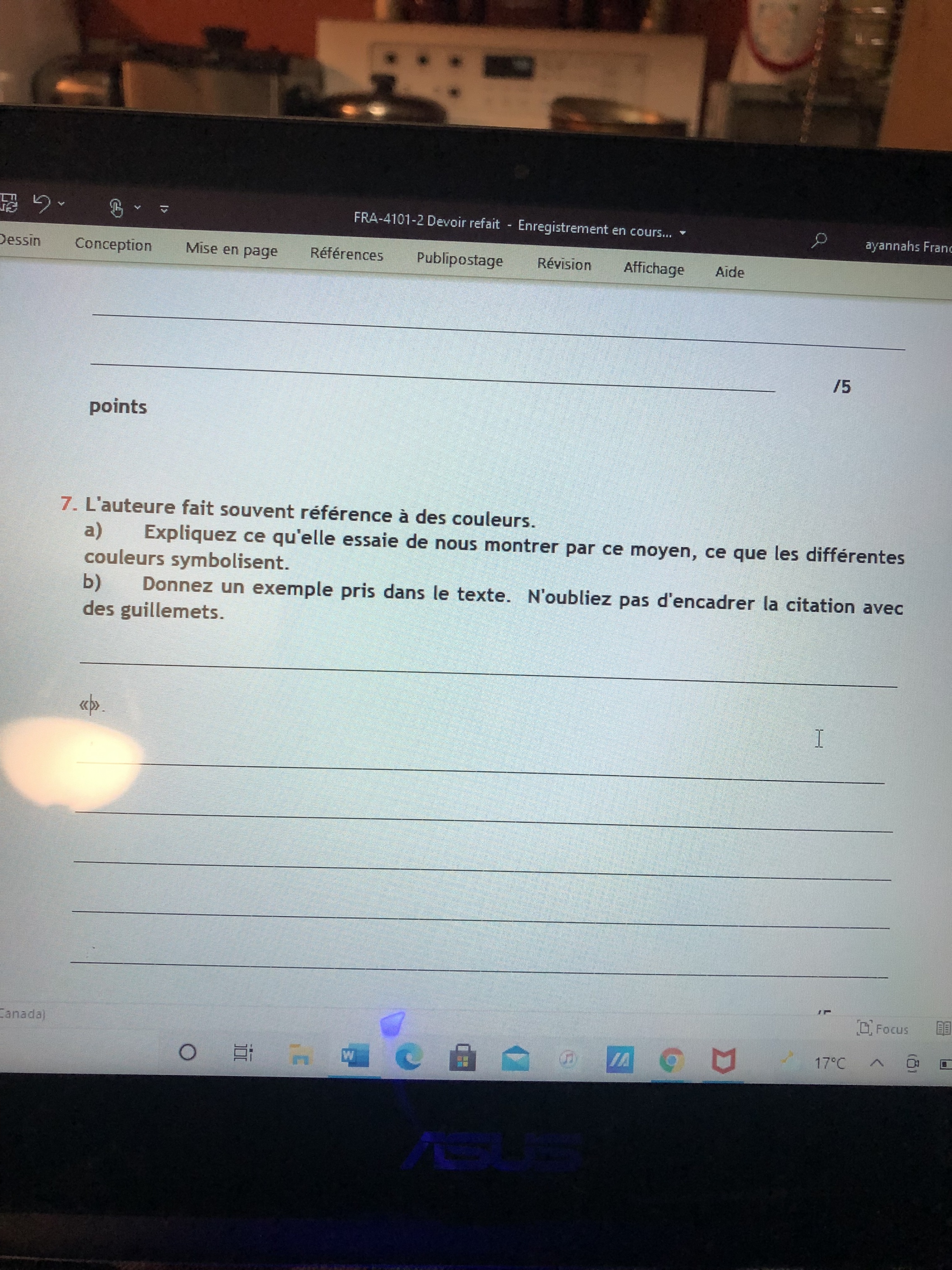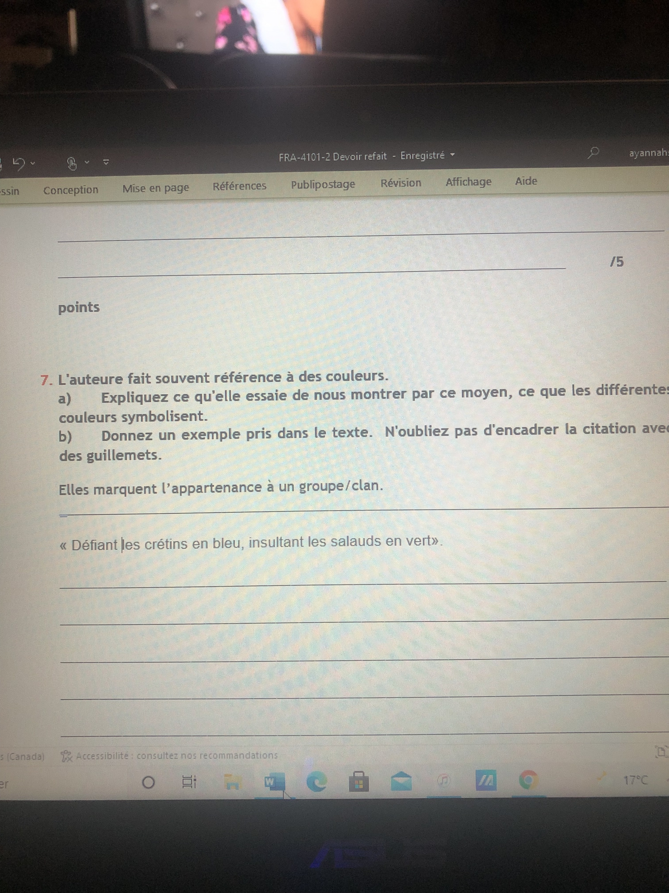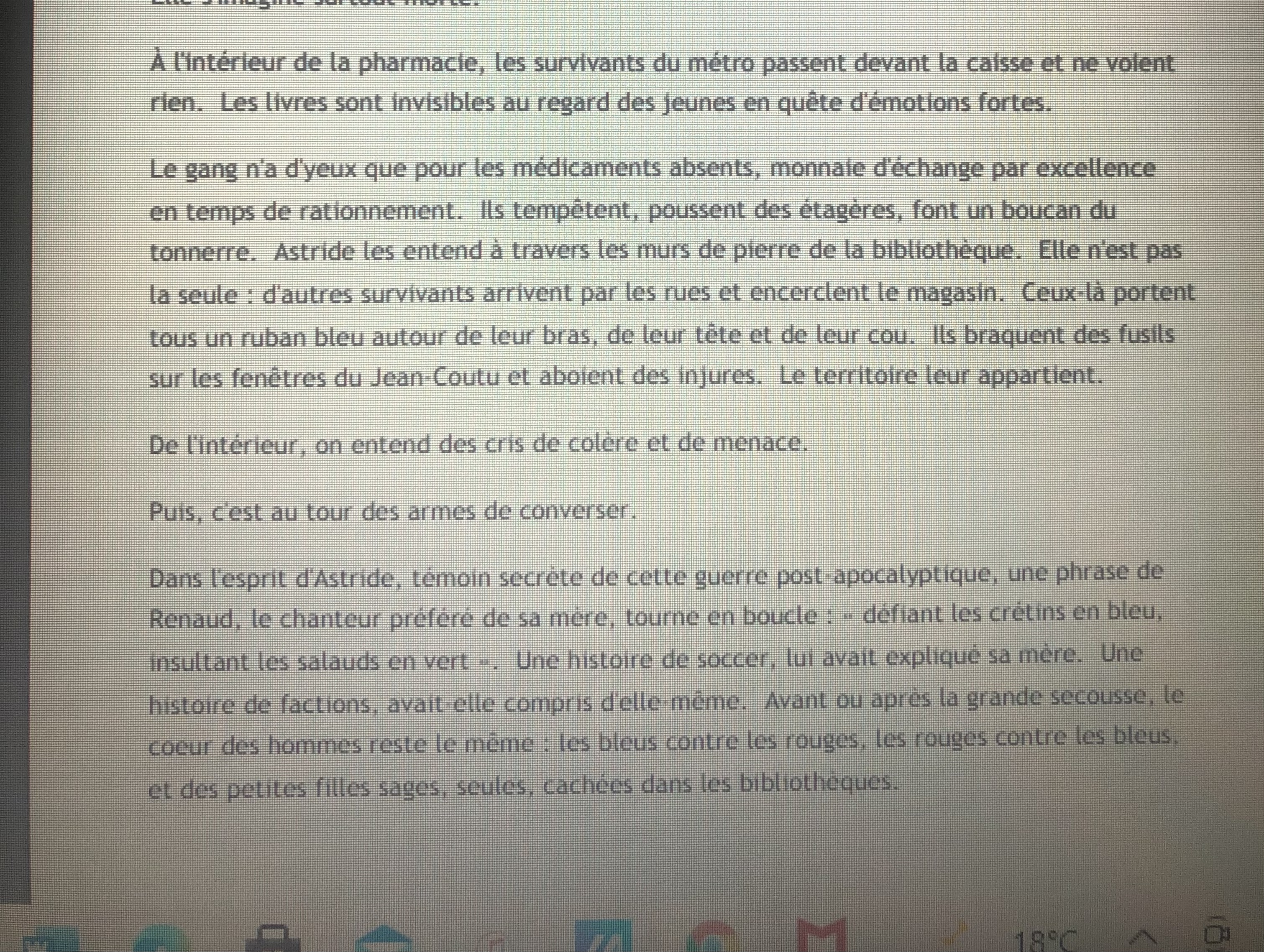 Secondaire 4 • 4aDans mon texte l’auteure fait souvent référence à des couleurs mais dans la question on me demande d’expliquer ce qu’ils symbolisent et ce qu’elle essaie de nous monter mais je ne sais pas j’ai besoin d’aide.