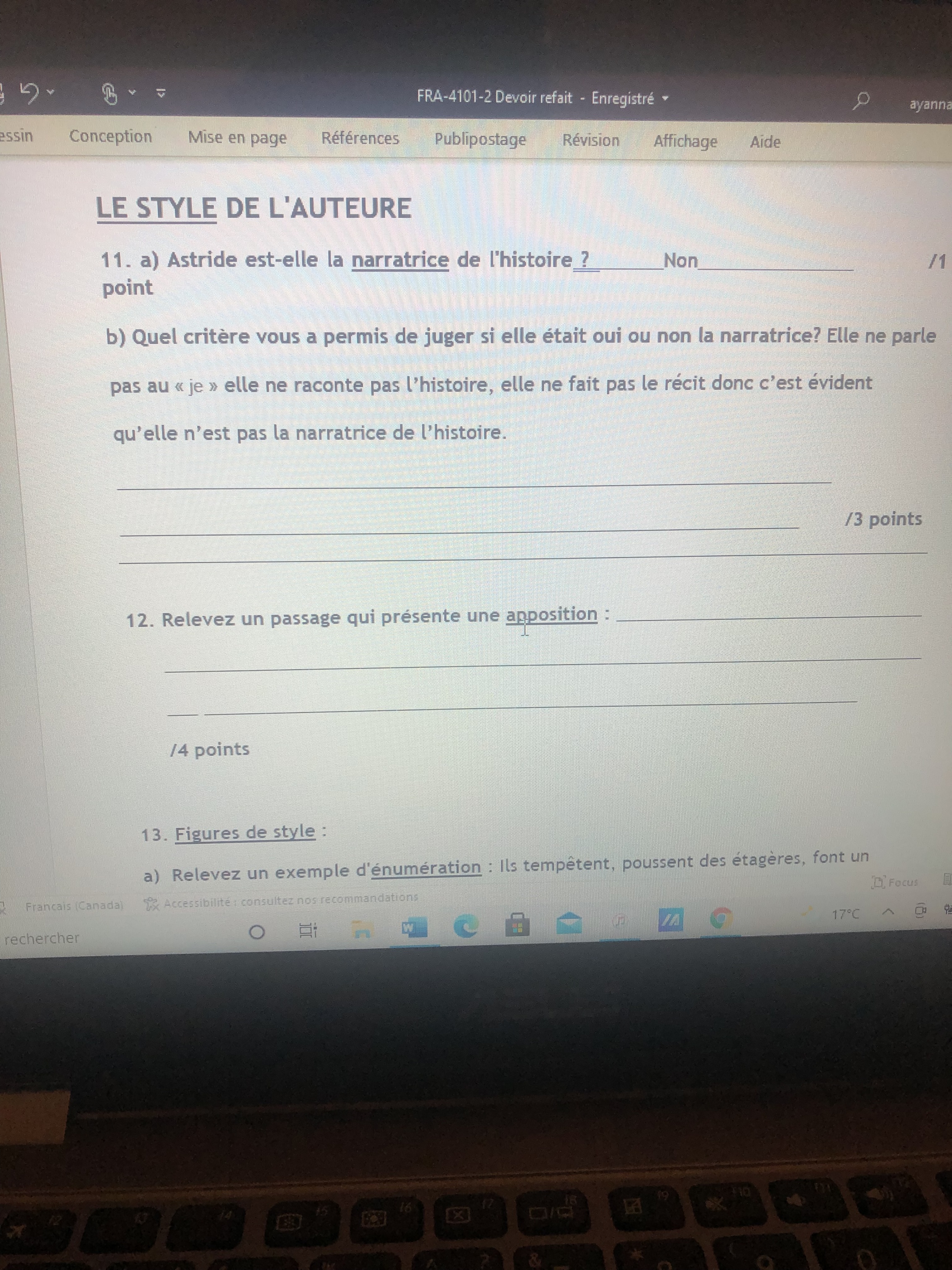 Secondaire 4 • 4aPouvez-vous m’aider a trouver un passage d’apposition dans cette extrait en me donnant des indices s’il vous plaît?