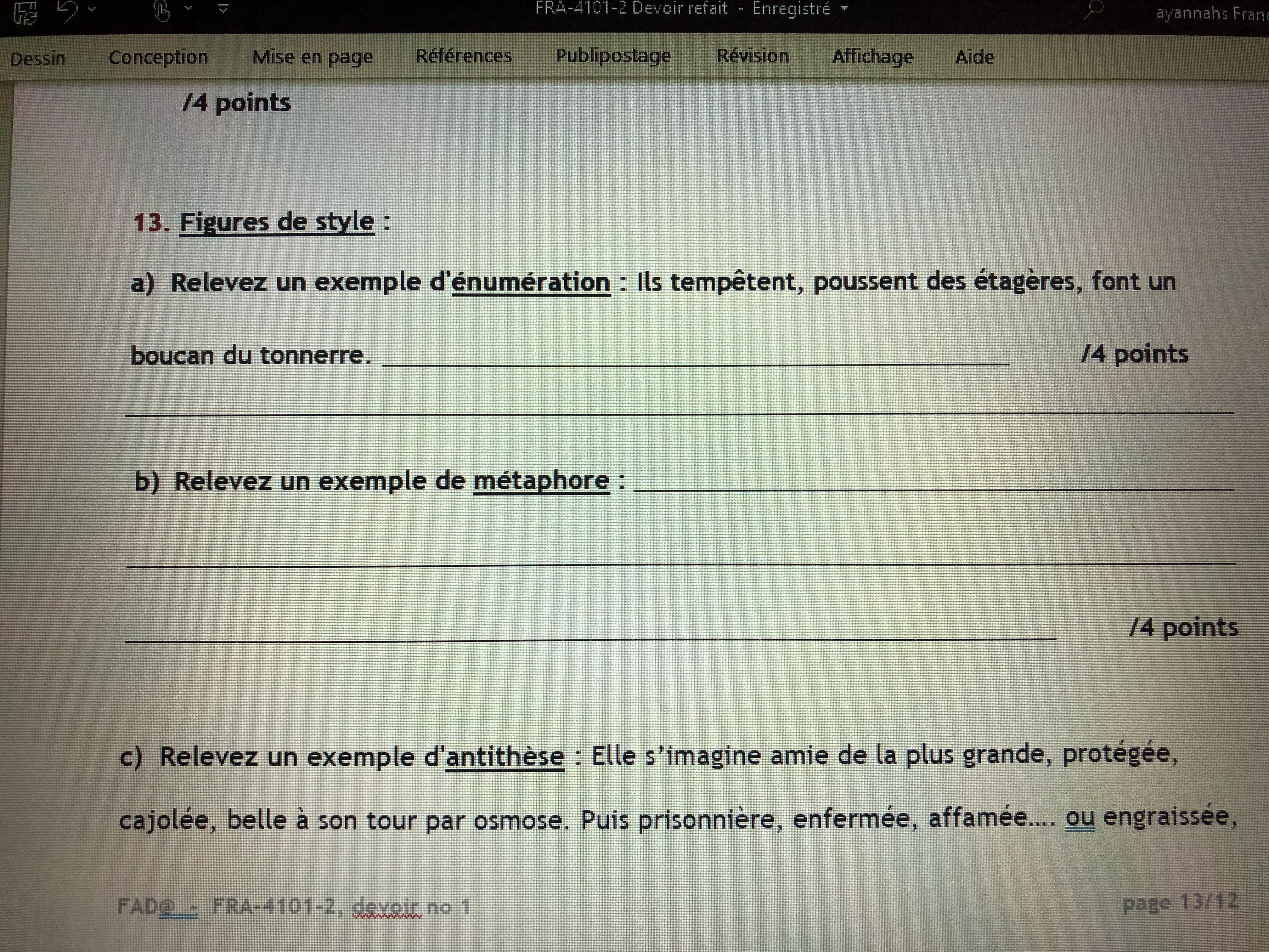 Secondaire 4 • 4aJ’ai besoin d’aide pour trouver une métaphore dans un texte s’il vous plaittt