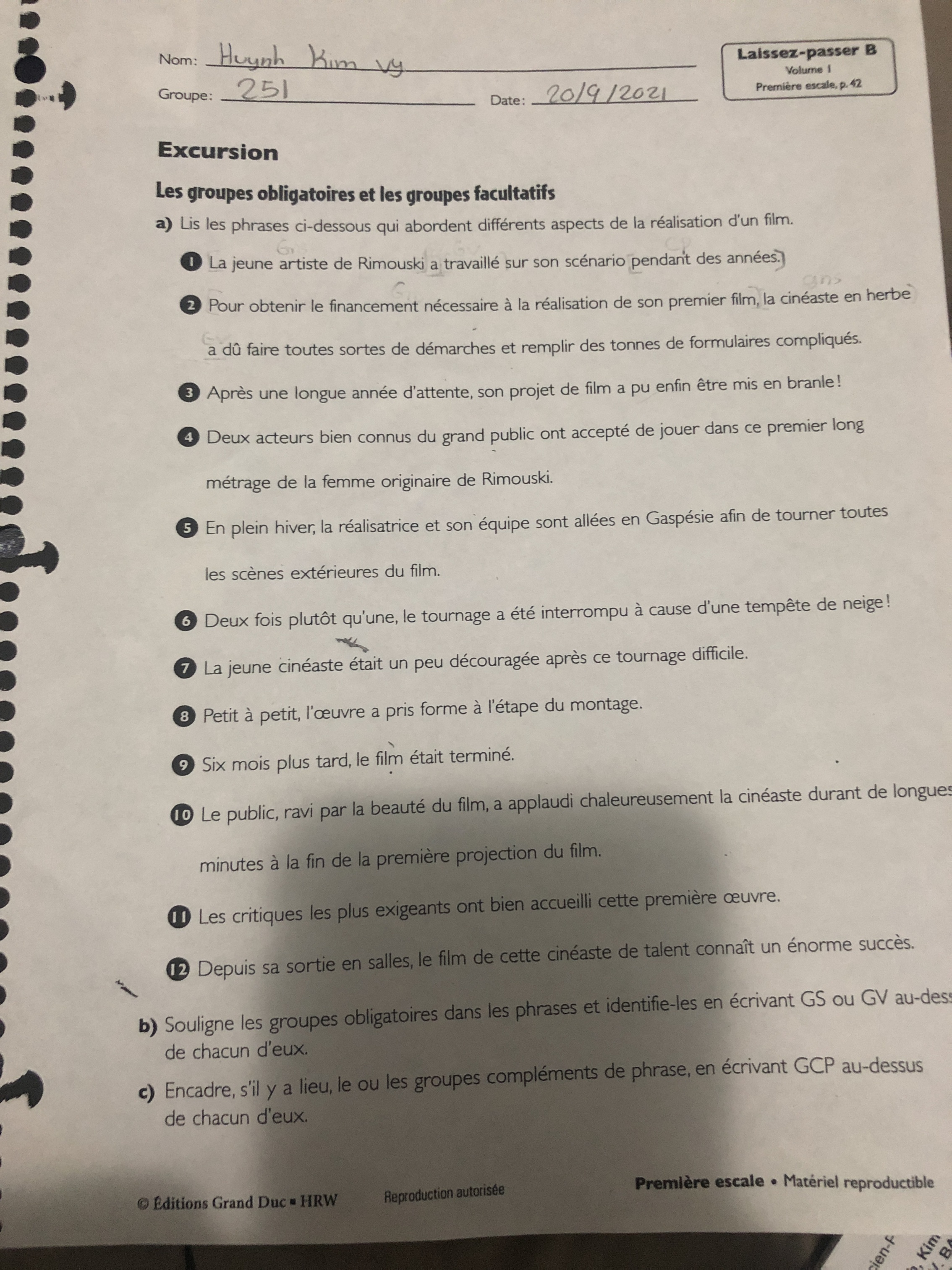 Secondaire 4 • 4aBonjour,j’aimerais savoir si m’a phrase est bien écrit.