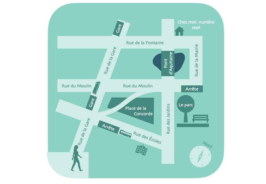 Secondaire 2 • 4aI need to make sure that this is grammatically correct.Voici comment tu vas chez moi :Si tu prends le train, tu marches pour cinq minutes. D'abord, prends la rue de la Gare et continue jusqu'à la gare sur ta gauche. Prends le train numéro 217 en direction du nord. Cette ligne passe par la rue de la Gare. Tu descends au premier arrêt de train. Tourne pour faire face au sud et prends la première rue à gauche dans la rue de la Fontaine, j'habite dans cette rue. Continue jusqu'à ce que tu arrives chez moi. C'est le numéro 7. C'est facile à trouver, c'est à l'angle de la rue de la Fontaine et de la rue des Jardins.Si tu prends le bus, prends la rue de la Gare et tourne à droite dans la première rue, la rue des Écoles. Tout de suite, tu arrives à un arrêt de bus. Prends le numéro 35 en direction de l'école. Cette ligne passe par la rue des Écoles, puis tu tournes à gauche dans la rue des Jardins. Quand tu arrives au parc, tu tournes à droite dans la première rue, dans la rue du Moulin et tu descends au premier arrêt. Tu prends la rue de la Mairie et tournes à gauche dans la rue de la Fontaine. Ma maison, c'est le numéro sept.Si tu es à pied, tu n'as pas de chance ! Mais ce n'est pas trop difficile. Tu prends la rue de la Gare. Puis, tu traverses la Place de la Concorde et tu arrives à la rue du Moulin. Continue dans la rue du Moulin en direction de l'arrêt, mais avant d'arriver au stop, tourne à gauche dans la rue des Jardins. Tout de suite, tu arrives au Pont d'Aquitaine. C'est une belle vue ! Tu traverses le pont et tournes à droite dans la rue de la Fontaine. Ma maison, c'est le numéro septC'est sur ta gauche.
