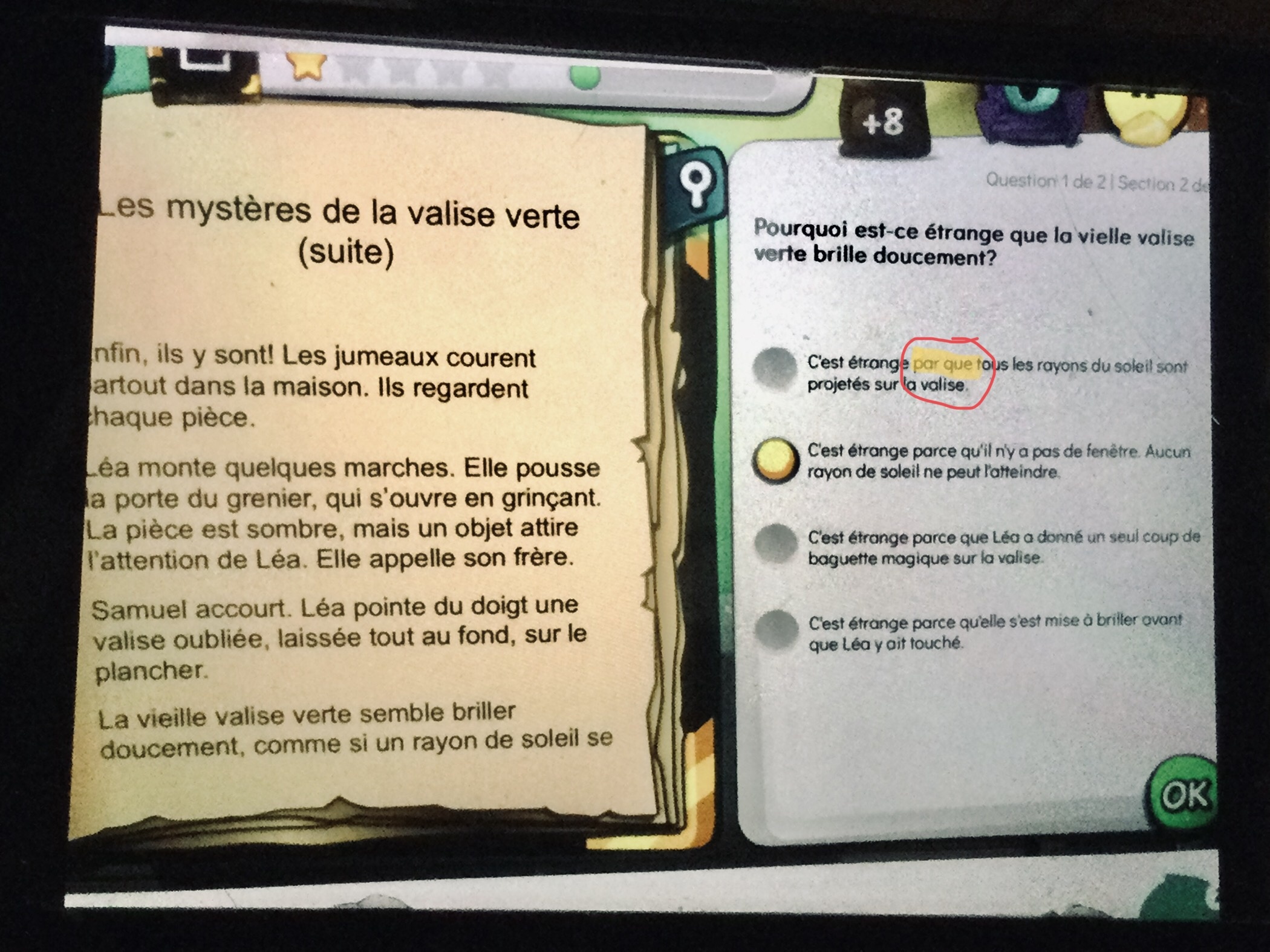Primaire 6 • 4aBonjour, je n’ai pas de question mais vous avez fait un erreur dans le jeu de Grimoire.