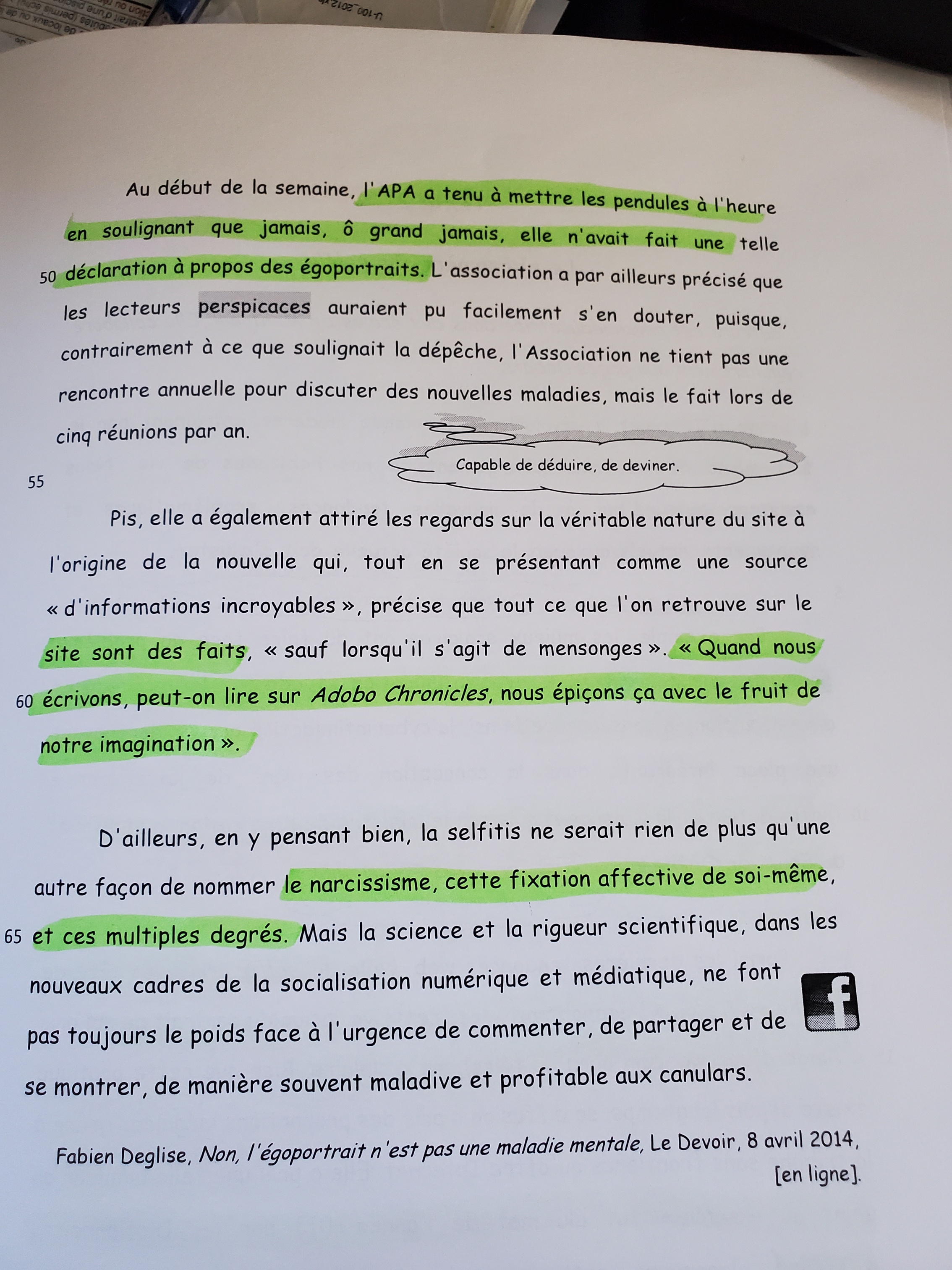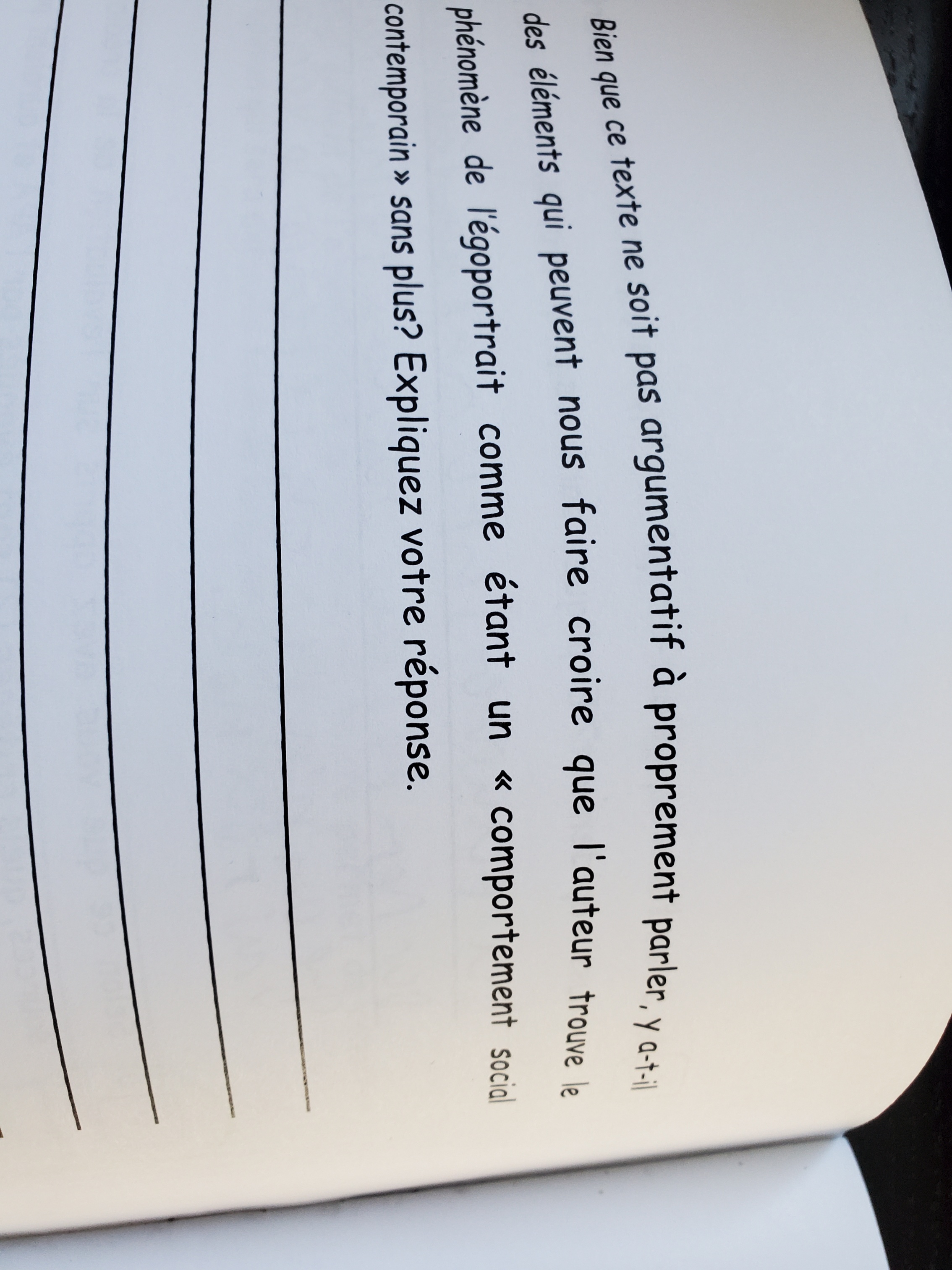 Il me manque ce bout de réponse ou je peux prouvez qui rit de ceux qui considèrent l'égoportrait ou tentent il plutôt de dédramatiser.