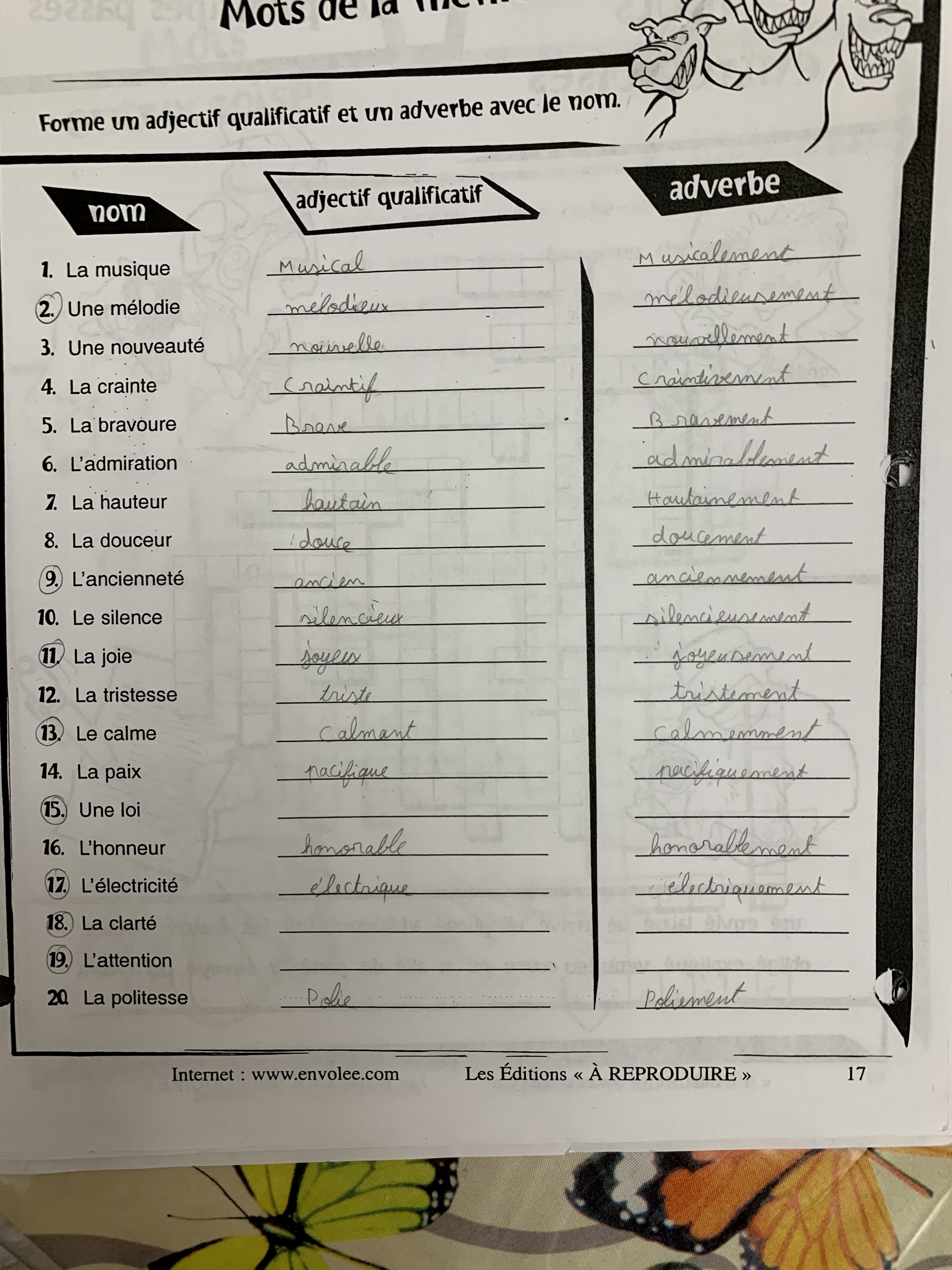 Secondaire 1 • 4aBonjour,je veux mots de la meme famille que une mélodie,l'ancienneté,la joie,calme, paix,loi ,l'électricité et l'attention.