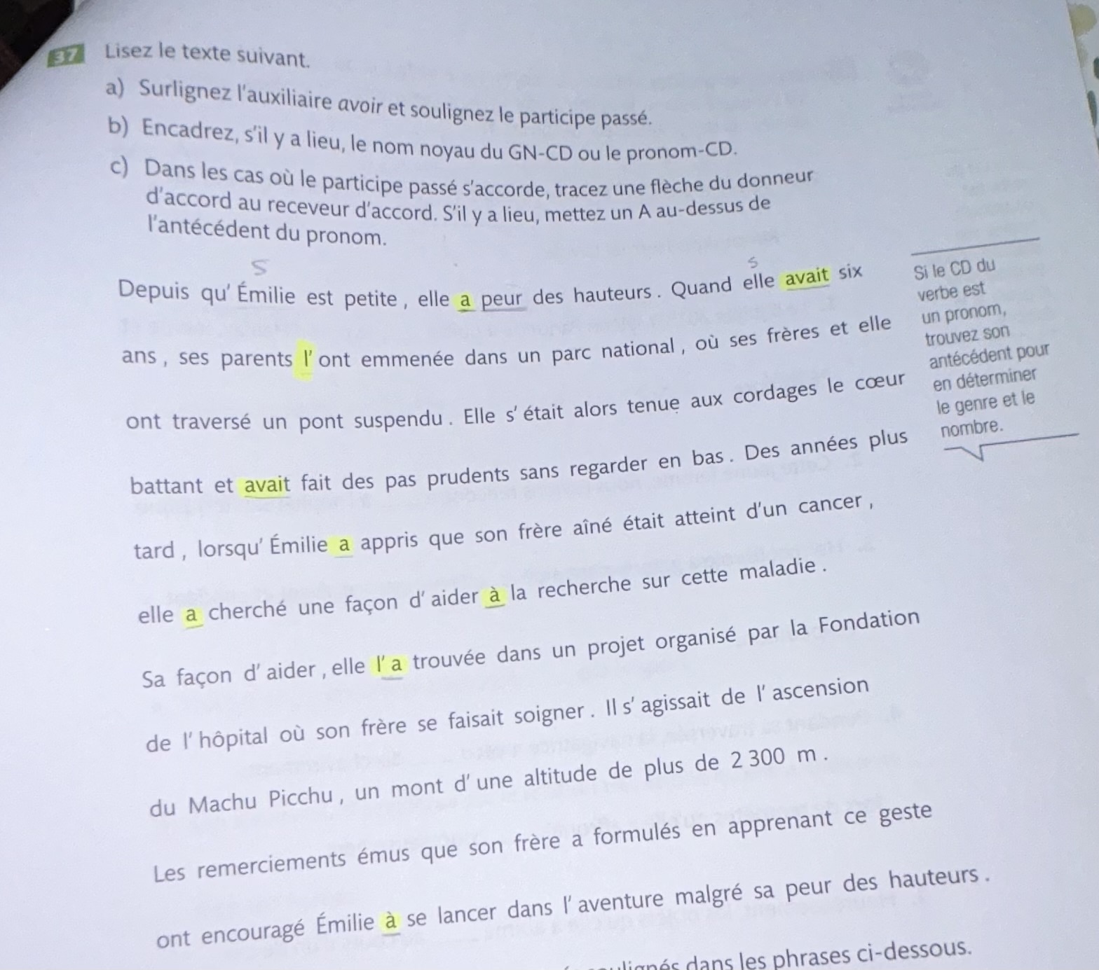 Secondaire 3 • 8mJe n’arrivent pas à comprendre le participe passer. Dans mon exercice de français secondaire 3 , on me demande de surligner l’auxiliaire avoir et souligner le participe passé. Je ne comprend absolument rien je suis complètement perdu.