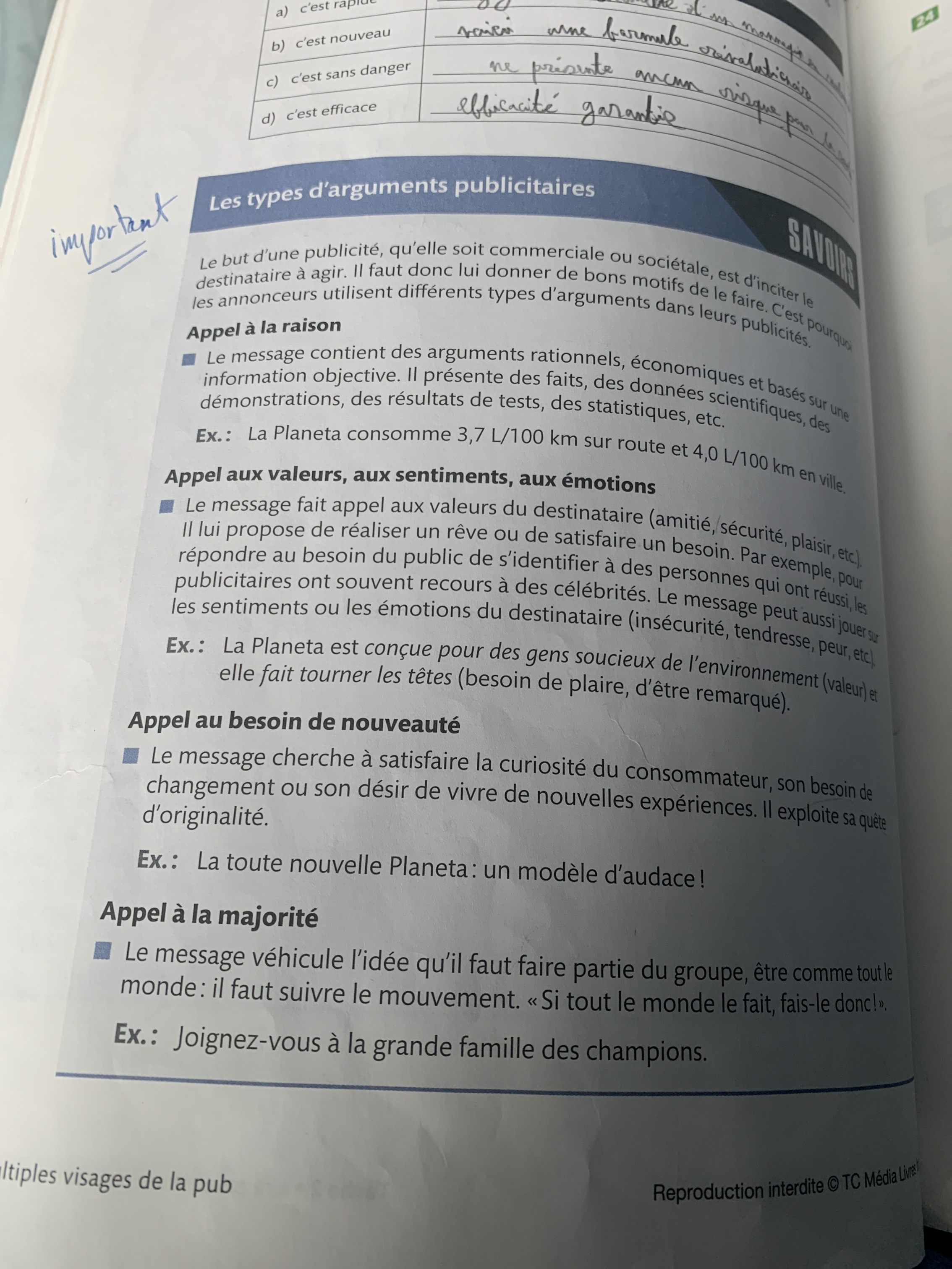 Secondaire 3 • 8mBonjour, j’aimerais savoir si j’ai la bonne réponse pour la publicité c’est la question numéro 3 b, désolé si j’ai écrit en lettres attachées