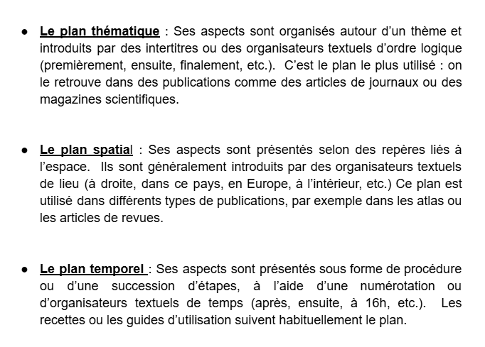 Secondaire 1 • 1mJe ne comprend pas très les type de plan premièrement le plan thématique, le plans spatial et le plans temporel je n'arrive pas à les identifier dans un texte, quand il à se genre de question dans un texte. Pouvez-vous m'aider ?