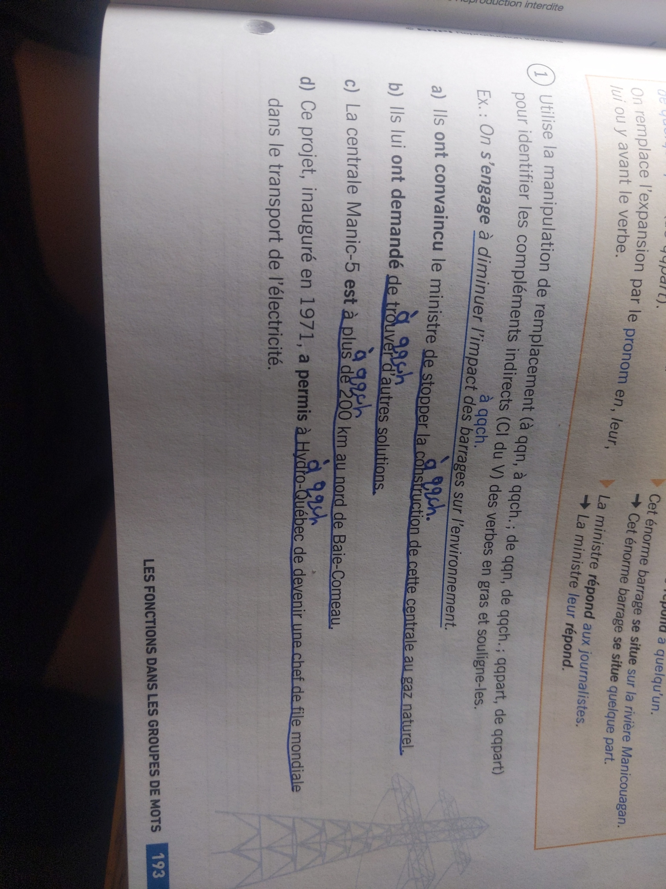 Secondaire 4 • 1aBonjour alloprof pour le d) Est ce que je dois surligner jusqu'à la fin de la phrase le Cl du verbe. Répondez oui ou non