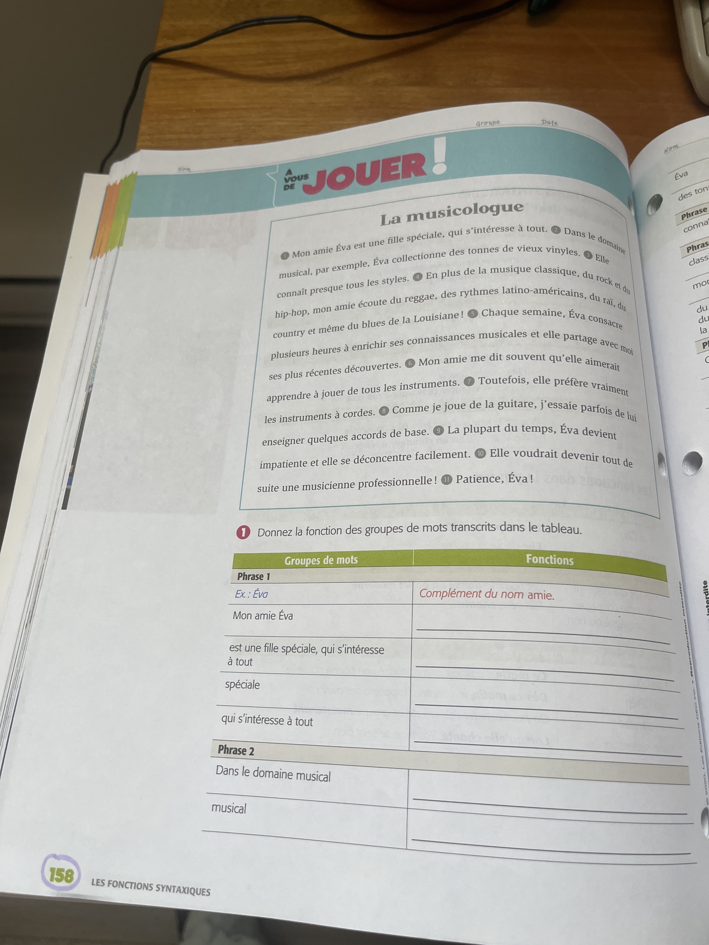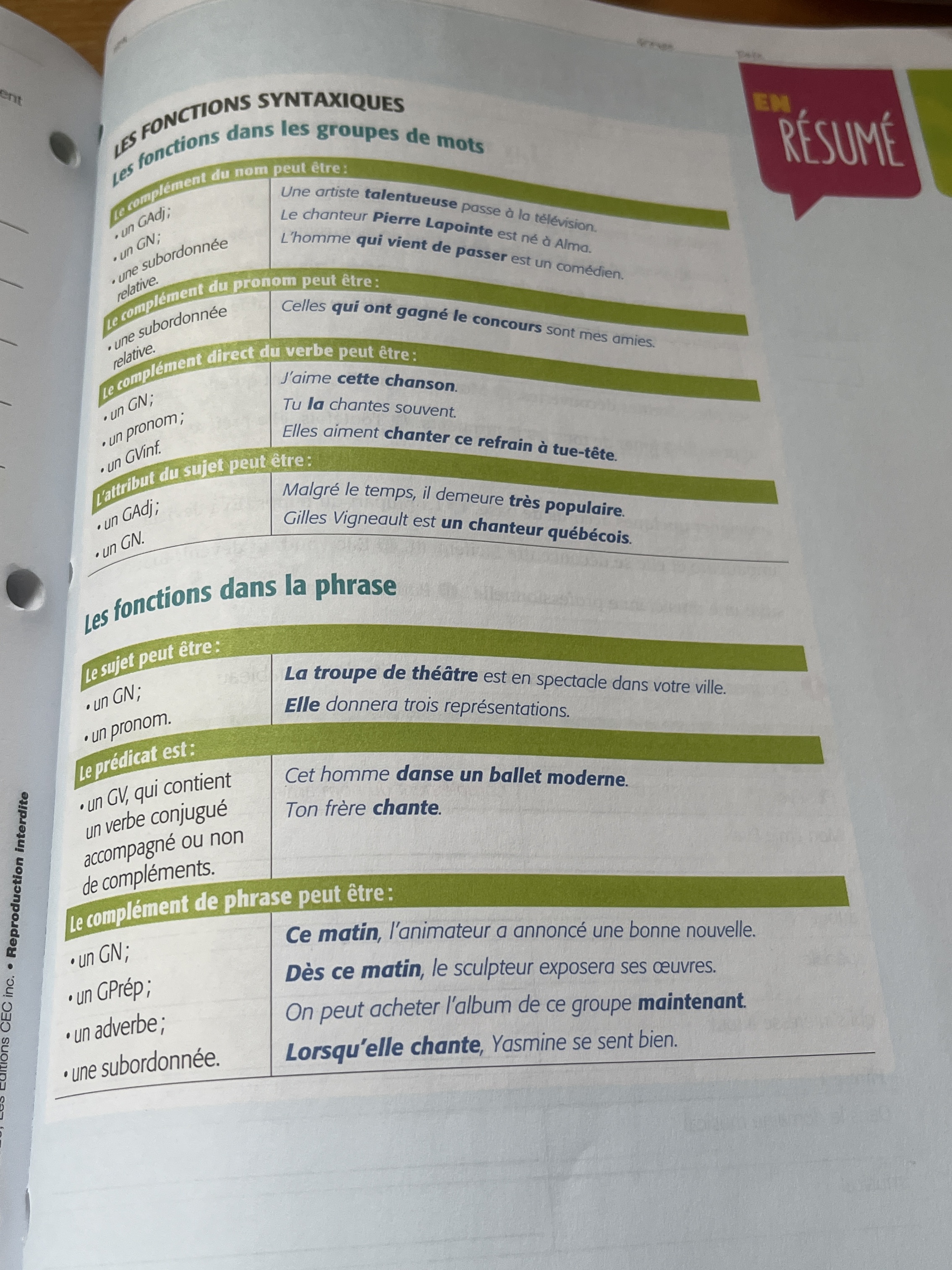 Secondaire 1 • 1aBonjour! Est-ce que quelqu’un peut m’aider avec les fonctions syntaxique et mon devoir? Svp