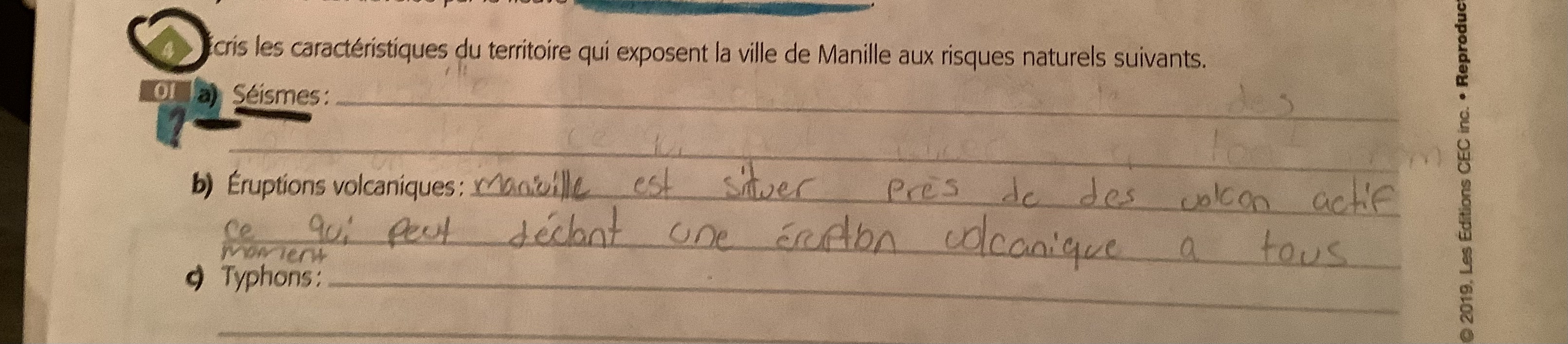 Secondaire 1 • 3aBonjour Alloprof , je voulais savoir c'est quoi les 2 risques naturels qui ont un effet positif sur la fertilité des sols à Manille ?