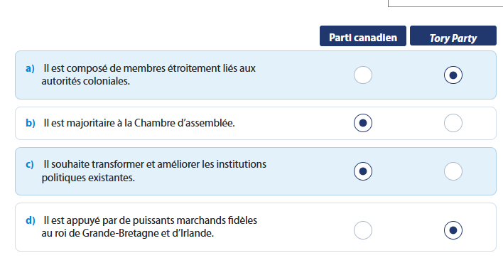 Secondaire 3 • 8mquel sont trois sujets de discorde entre les députés canadiens et britanniques de la chambre d’assemblée entre 1792 et 1812