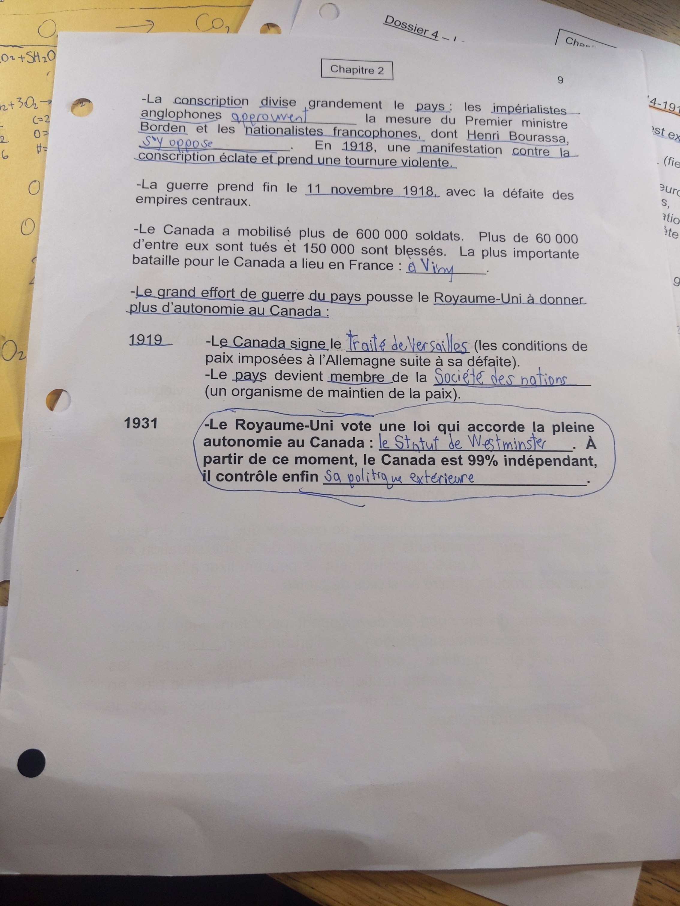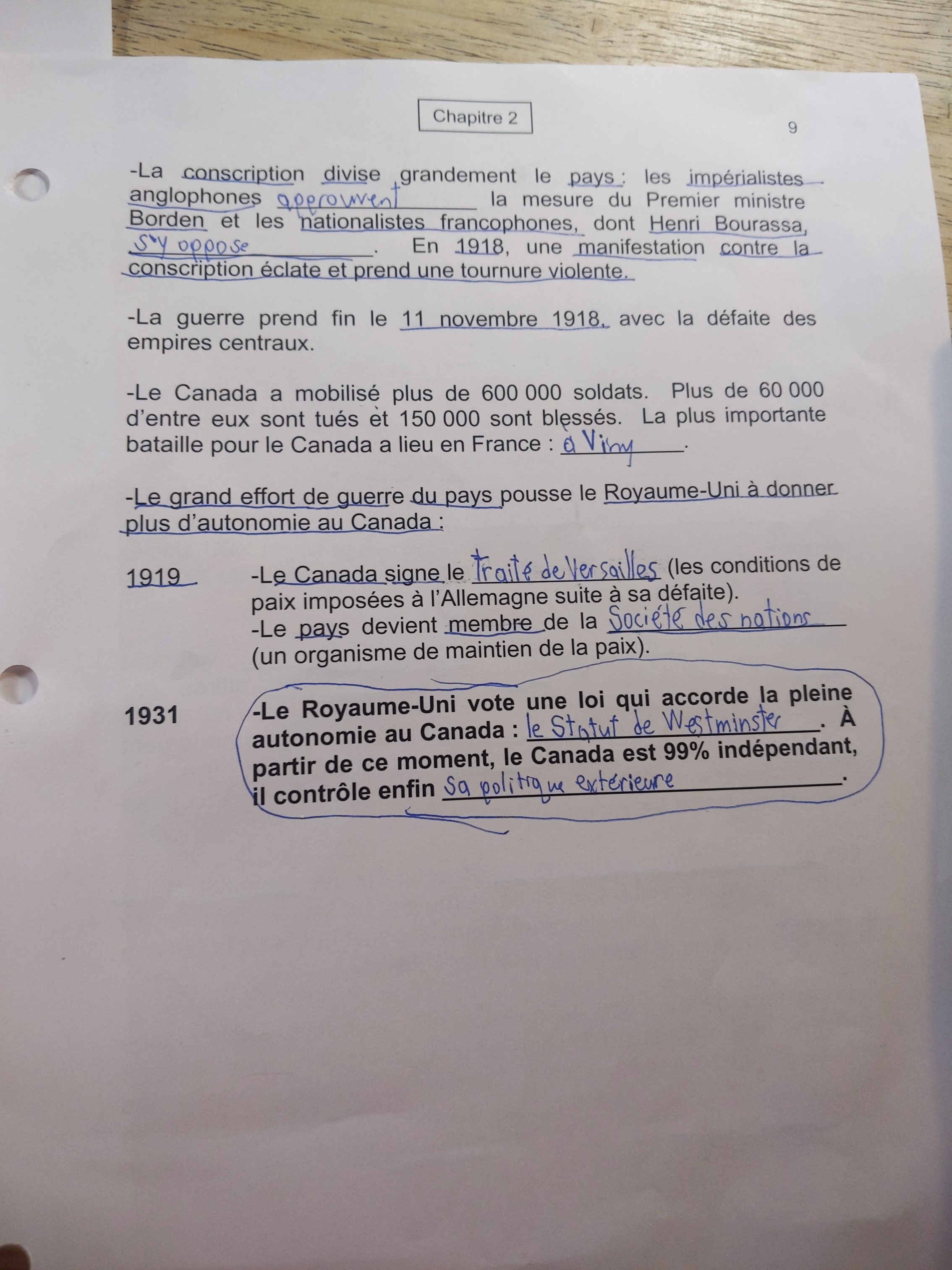 Secondaire 4 • 1aEst ce c'est seulement en 1931 que le Canada contrôle enfin sa politique intérieure?