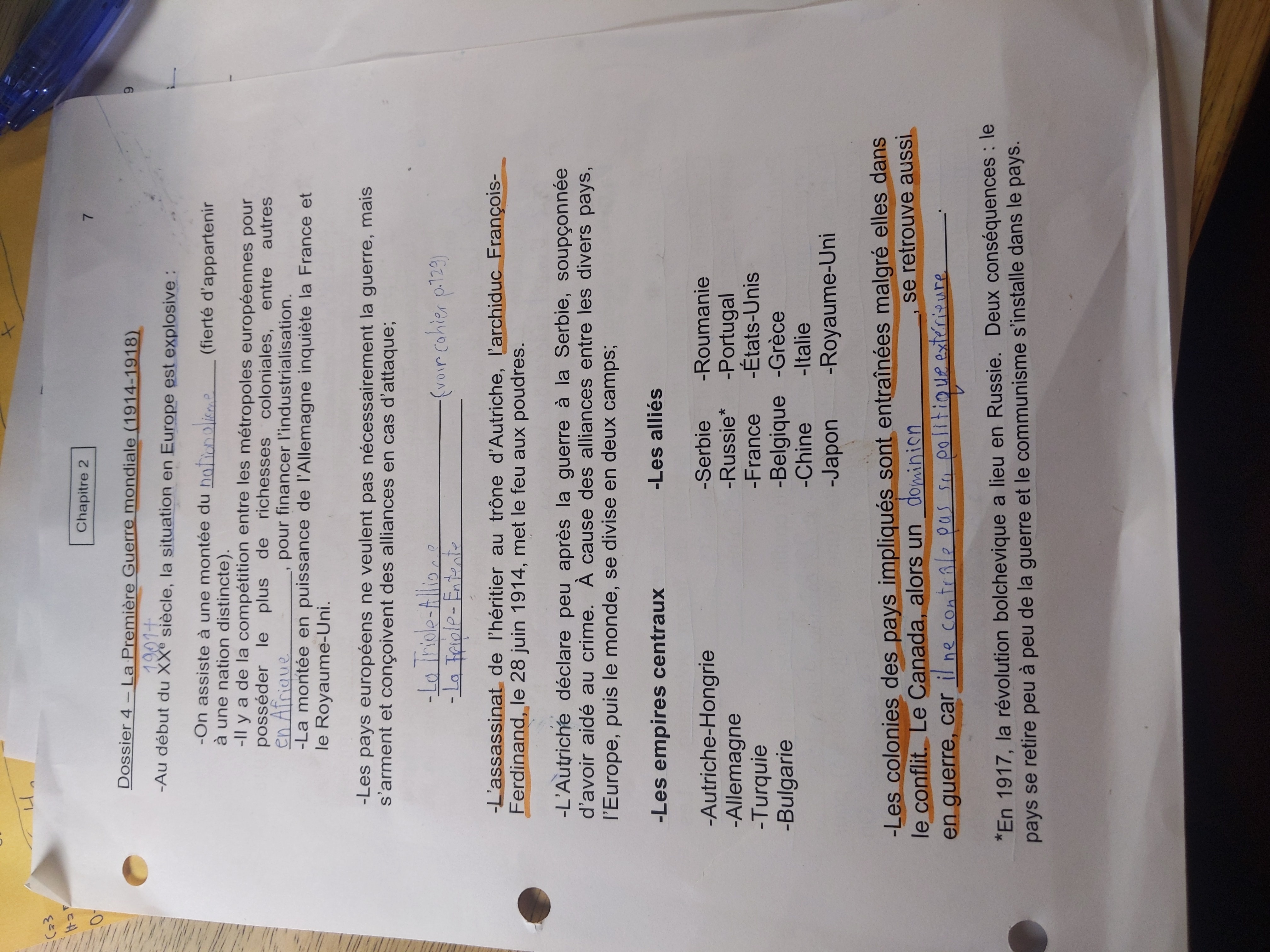 Secondaire 4 • 1aEn quoi la montée du nationalisme a un lien avec la situation explosive puisquon parlait du nationalisme au Dominion Canada et ces trois choses sont-ils les autres raisons de la première guerre mondiale?