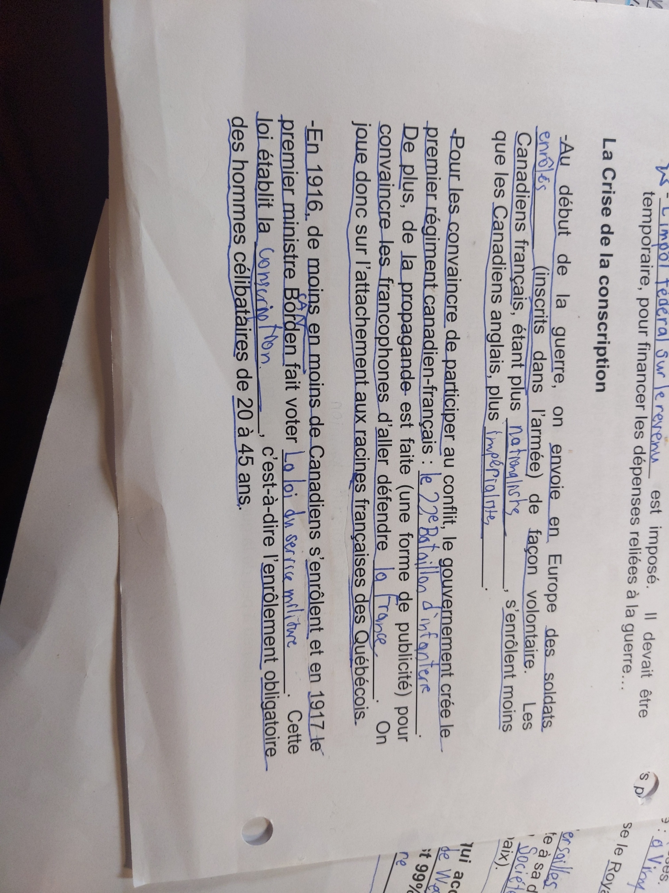 Secondaire 4 • 1aDésolé de dire ça mais vous ne m'aidez pas parce que vous voulez que je joue au devinette vous me dites que ma réponse n'est pas correct parce que je n'ai pas dit c'est quoi conscription alors que ça n'a aucun lien avec ma question et vous m'avez vraiment mis confusion à 100%Je dois seulement dire pourquoi il y a eu la crise de la circonscription depuis quand je dois dire c'est quoi circonscription merci