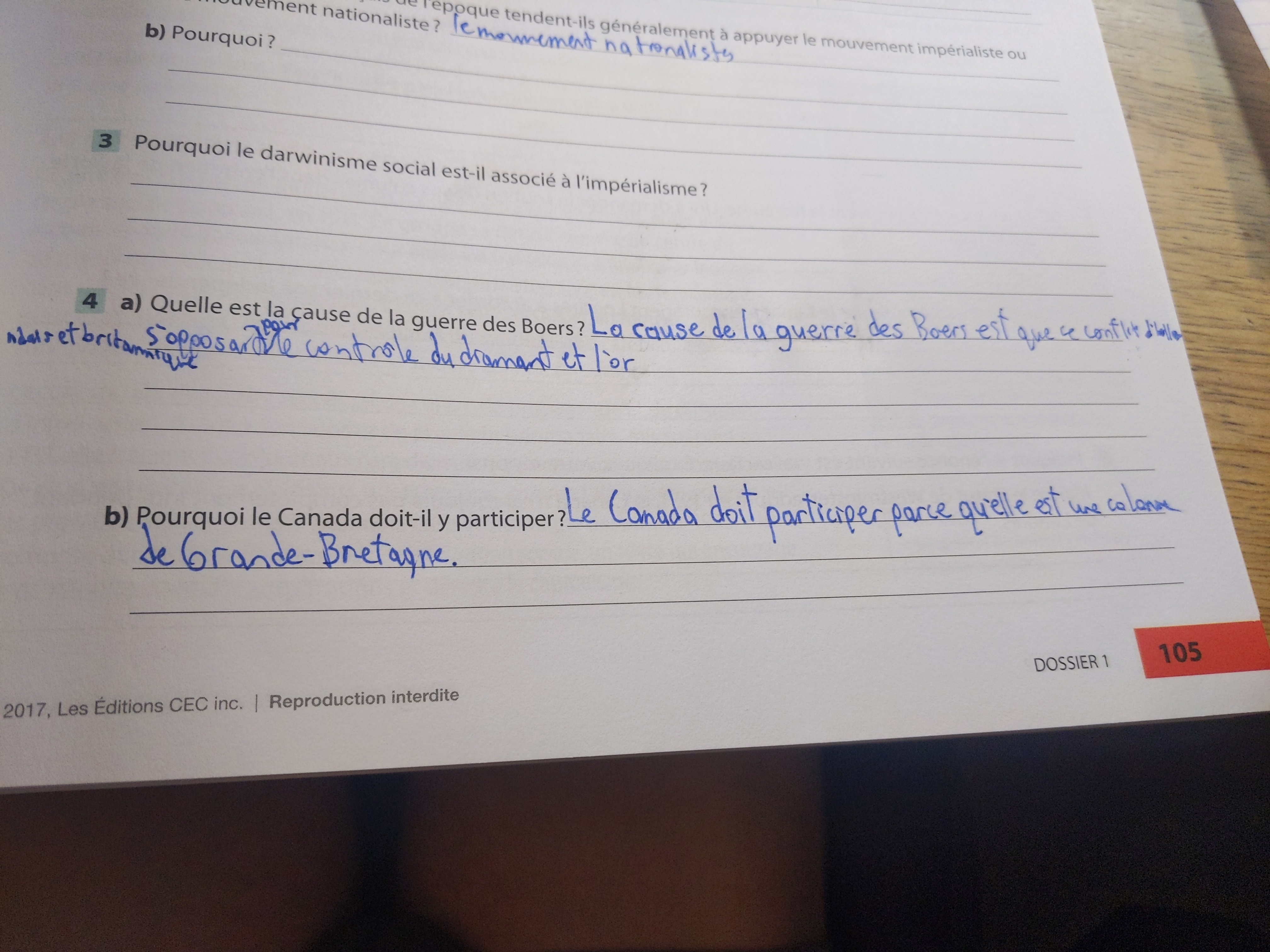 Secondaire 4 • 1aQuelles sont les conflits entre impérialiste et les nationalistes dans la guerre des Boers et la création de la marine canadiennes