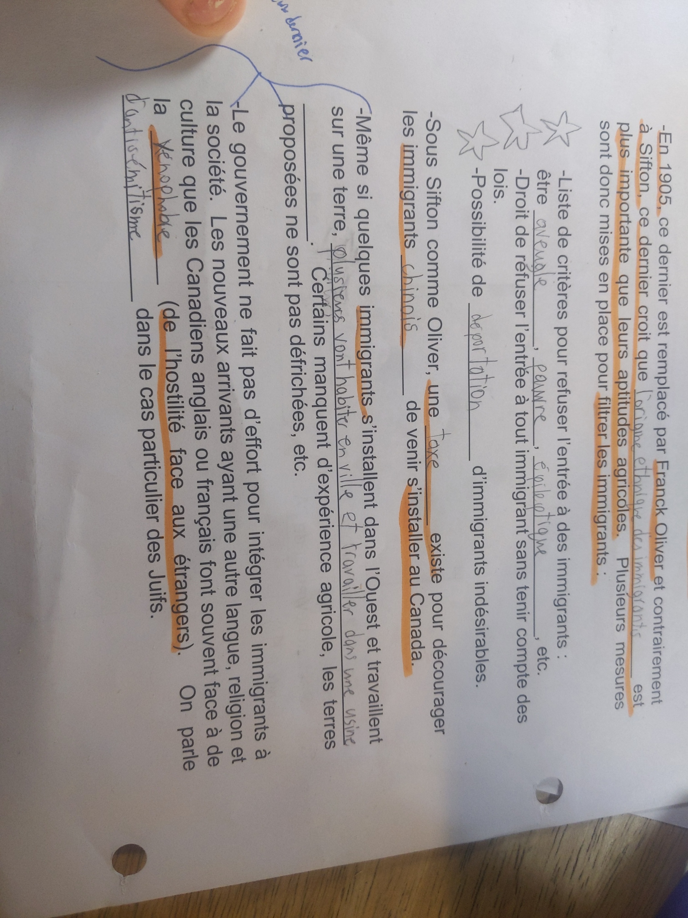 Secondaire 4 • 1aBonjour alloprof je ne vois pas comment dans ces deux dernières paragraphe ont un lien avec filtrer les immigrantsRegarder les deux derniers paragraphes que je montre avec mon doigt