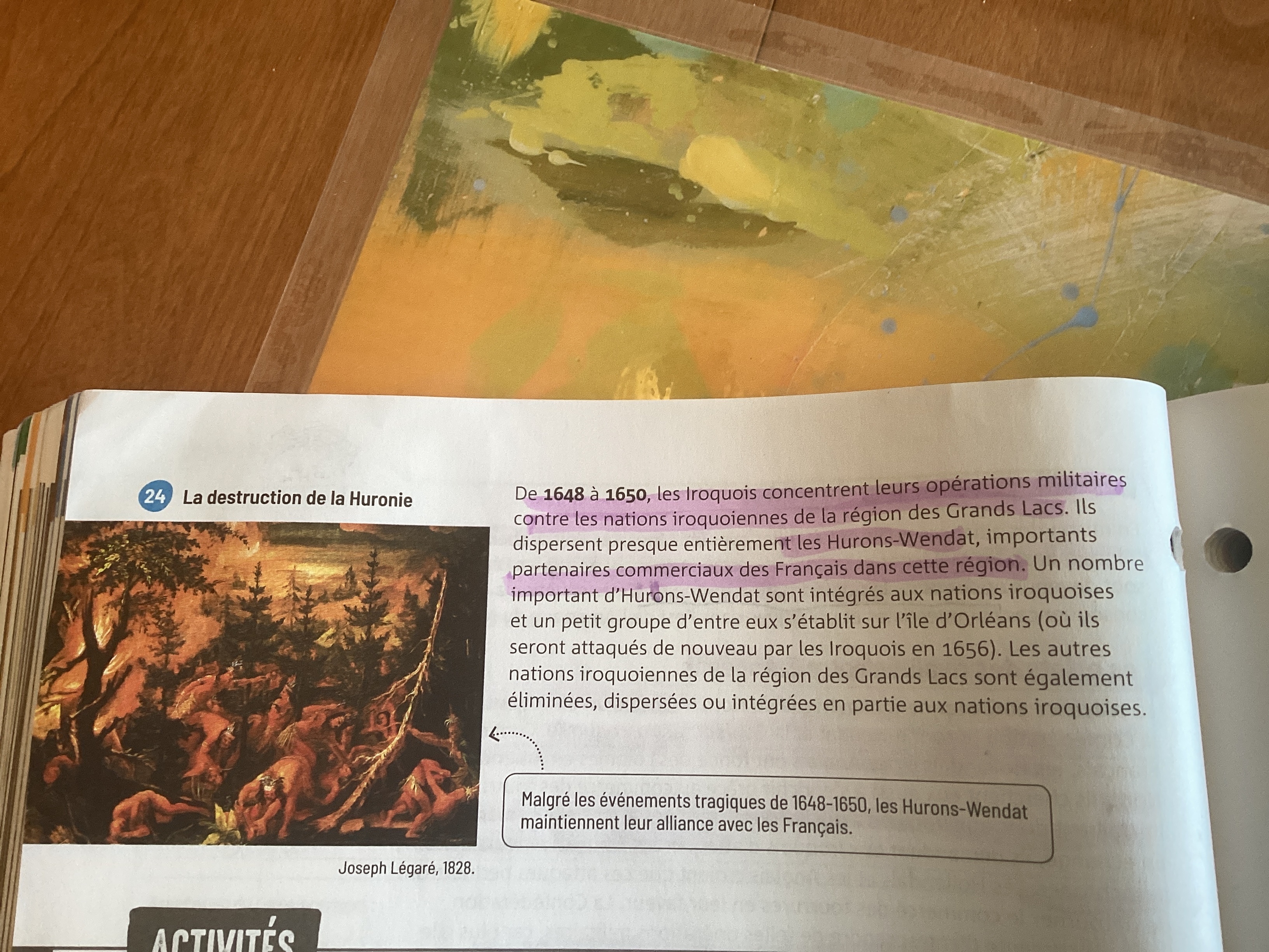 Secondaire 3 • 1aBonjour je ne comprends pas pourquoi dans le texte ils disent: les iroquois concentrent leurs opérations militaires contre les nations iroquoiennes. Ce n’est pas contre les Hurons ?