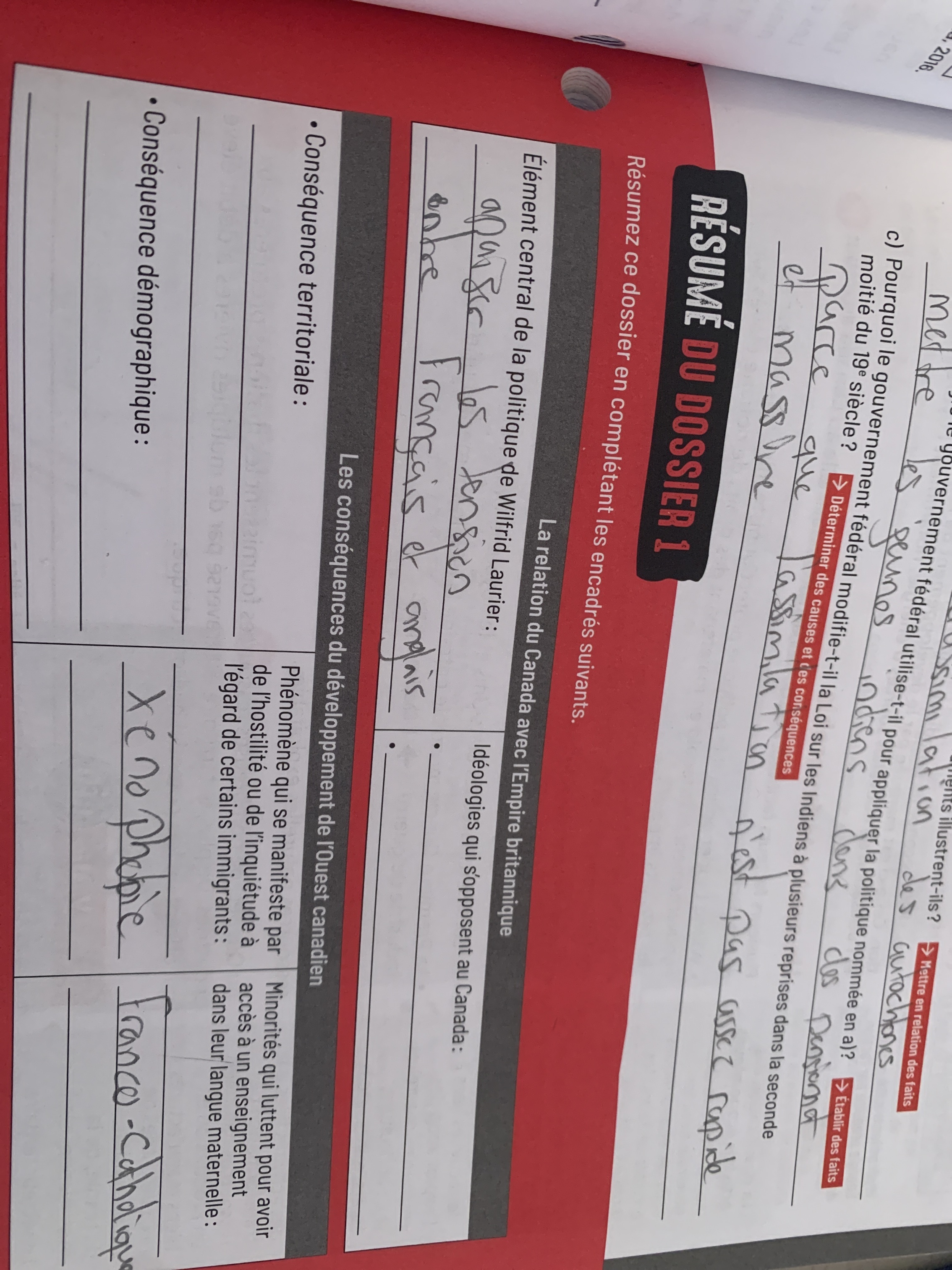 Secondaire 4 • 1aPourquoi la politique d'immigration du Canada voulait attirer des étrangers pour développer l'ouest du Canada?