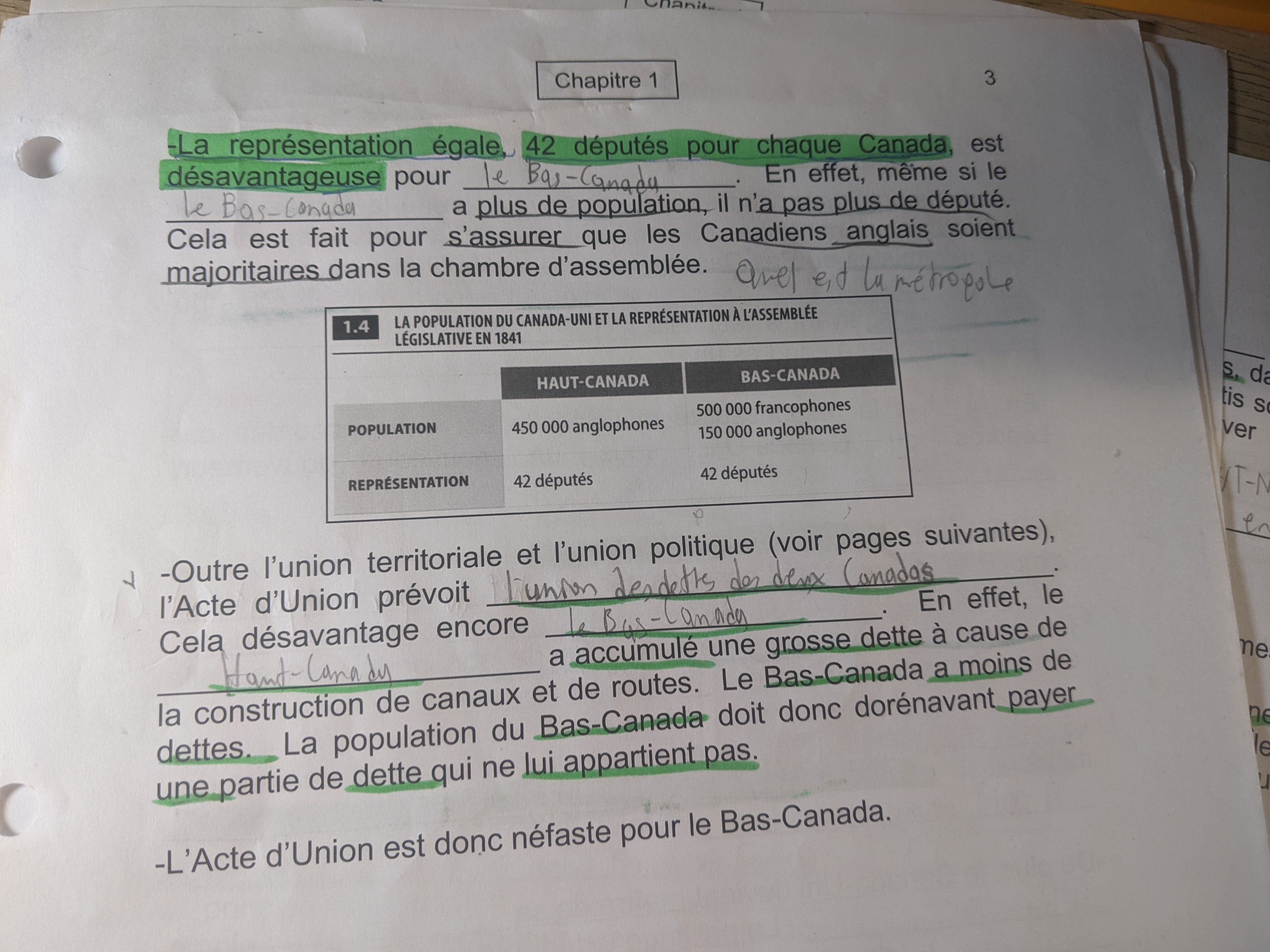 1)Pourquoi 42 député à pour chaque Canada est désavantageuses pour le bas canada?