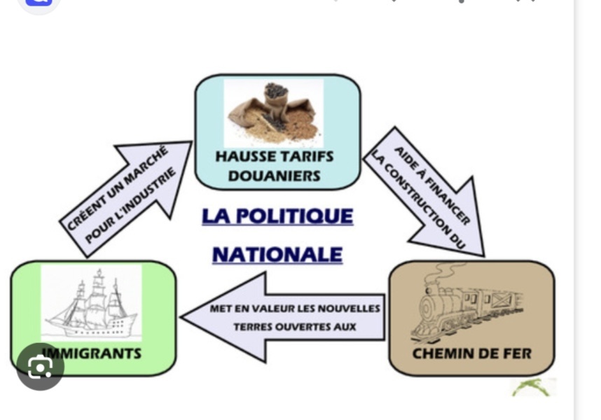 Secondaire 4 • 1aEst ce que le schéma avec la hausse des tarifs douaniers et avec les chemins de fer et les immigrants ou que c écrit politique nationale dessus. Est ce qu’il parle de la politique nationale de John À. Macdonald