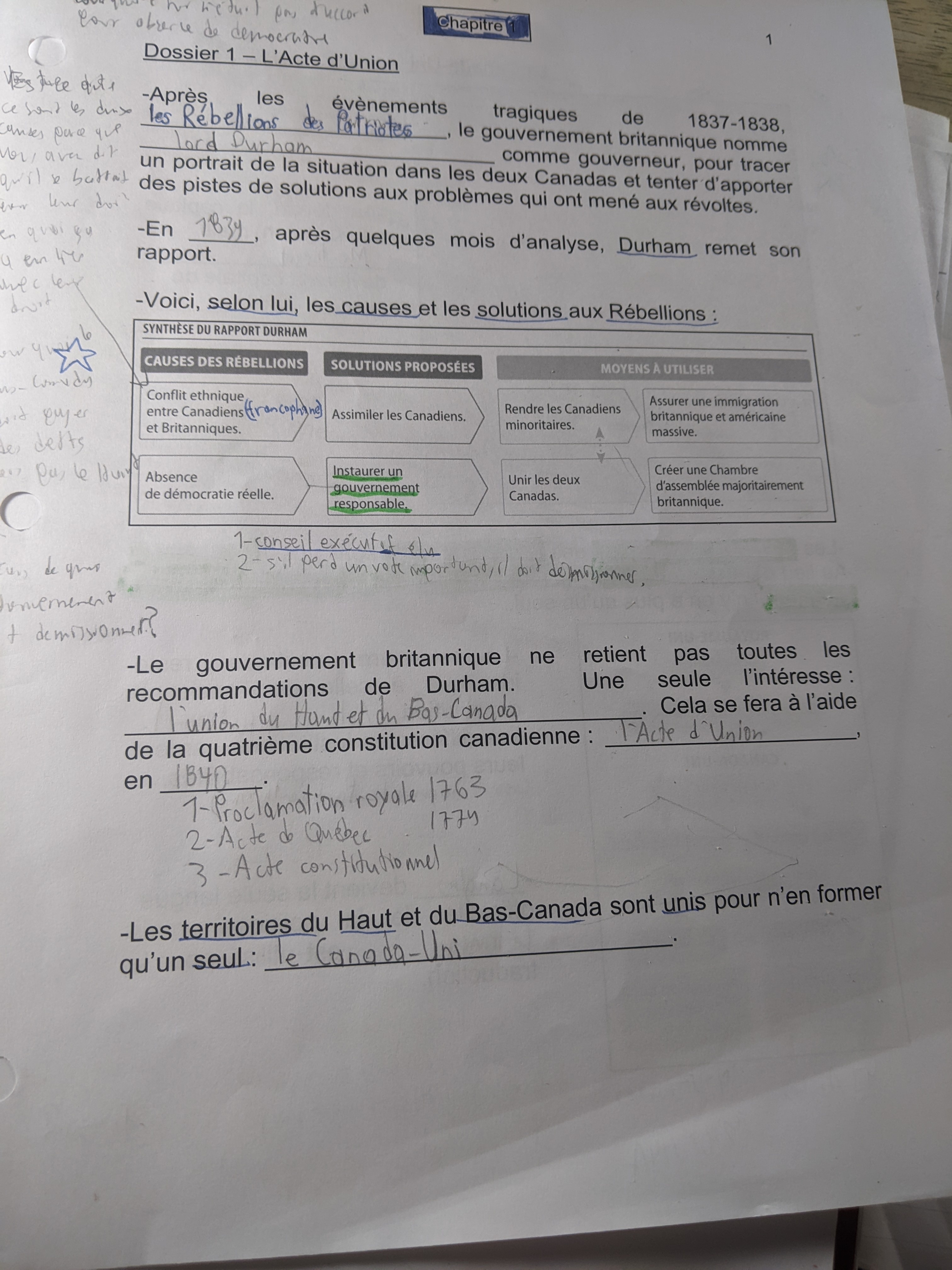 Pourrez-vous m'aider à comprendre le rapport Durham. Donc, je dois connaitre les causes des conflits et ce qu'il a proposé.