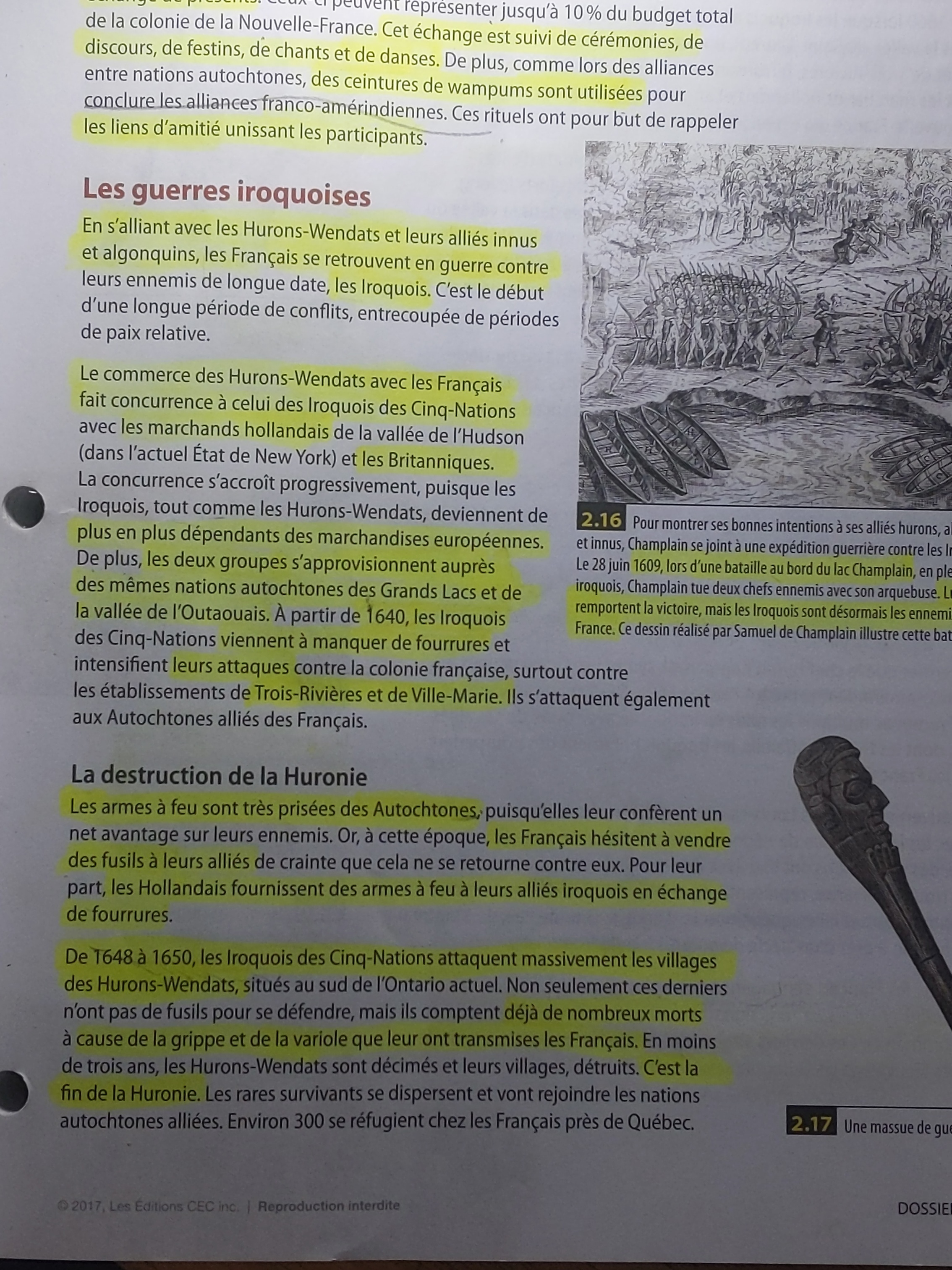 Secondaire 3 • 1aBonjour je n'ai pas bien compris l'événement de guerres iroquoises et la destruction de la Huronie ?