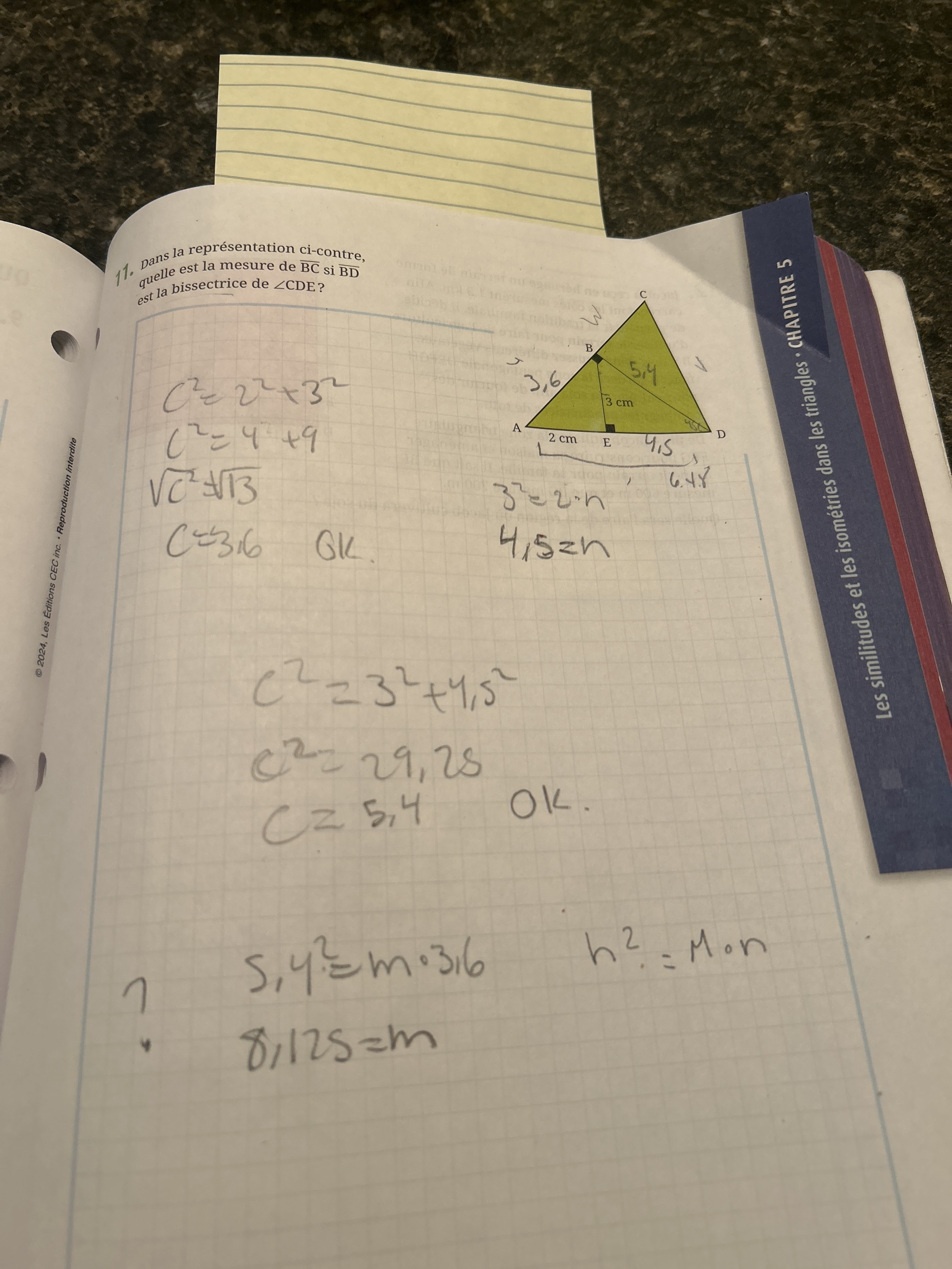 Secondaire 4 • 18jAllo j’ai trouvé tout mes chiffres mais si je prends une de mes deux formules j’ai des chois différents. Est que le segment db est la hauteur du triangle cda