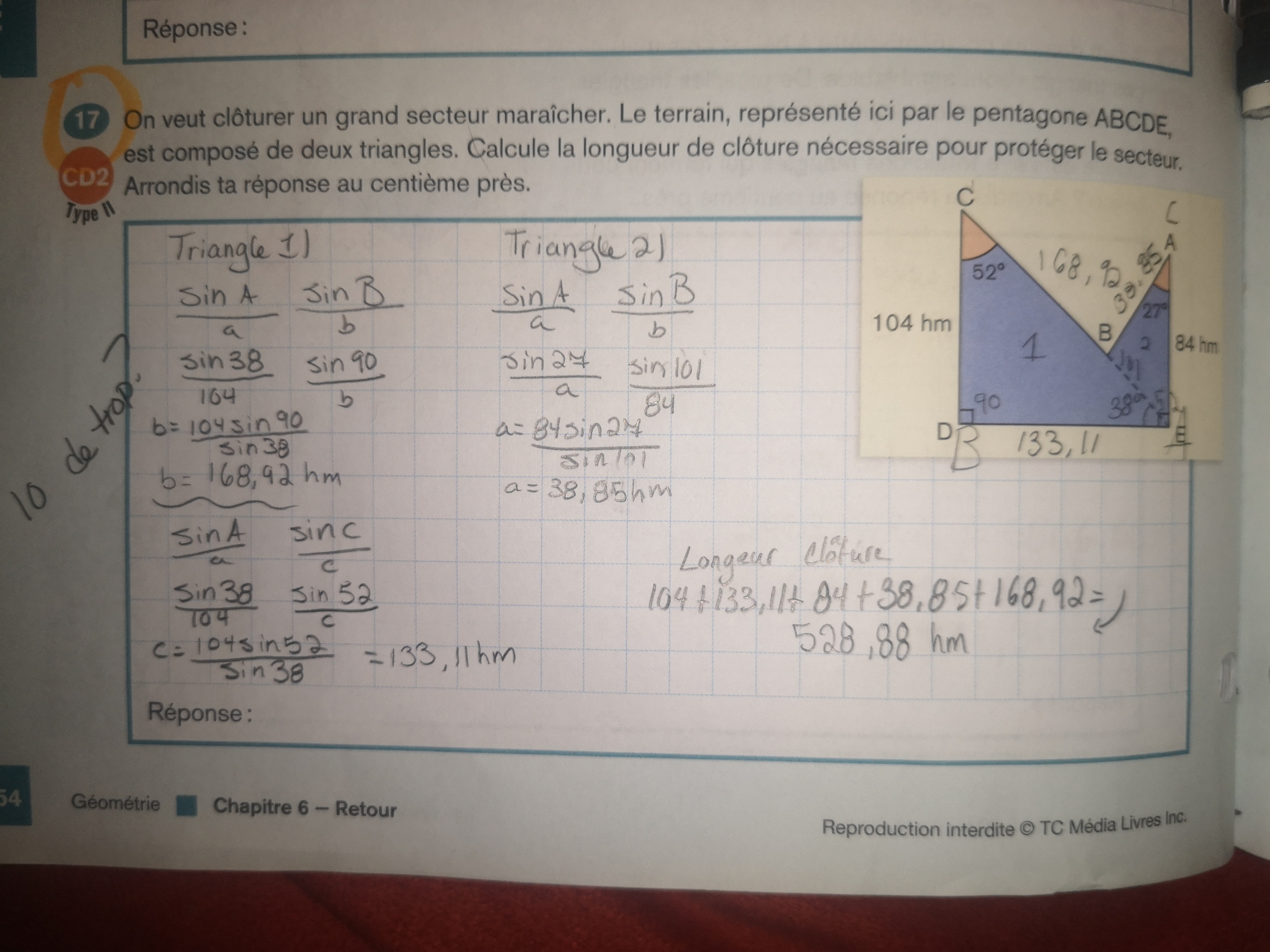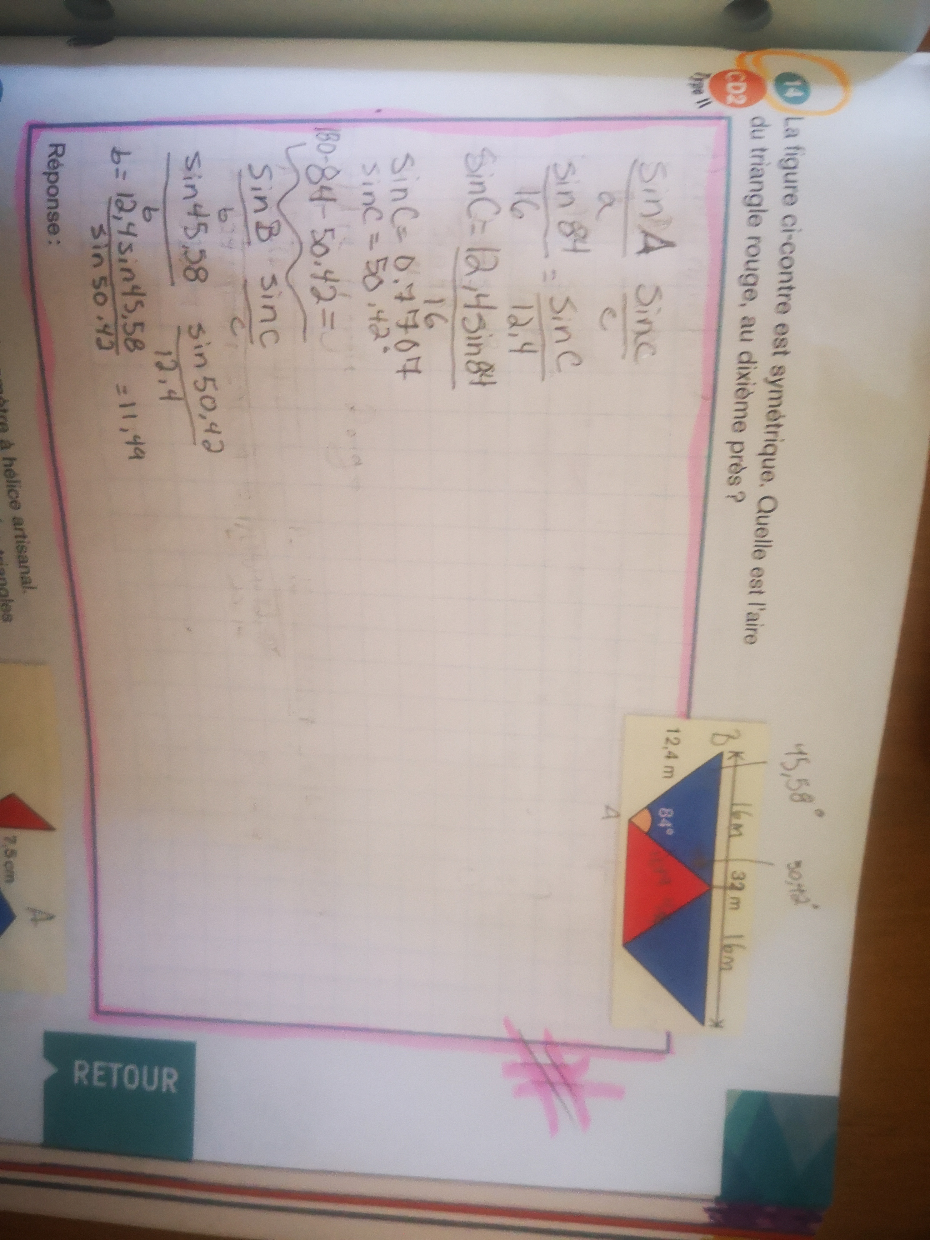 Mon professeur à domicile m'a donné le corrigé des réponses pour savoir si ma démarche est bonne. Grossomodo ça va, mais c'est deux là je n'arrive pas à la bonne réponse et j'ai beau recommencé mes calculs , sa n'arrive jamais au bon résultat. Quelqu'un pourrait m'aider à trouvé là ou je ne fait pas la bonne chose? 😂Merci d'avance!
