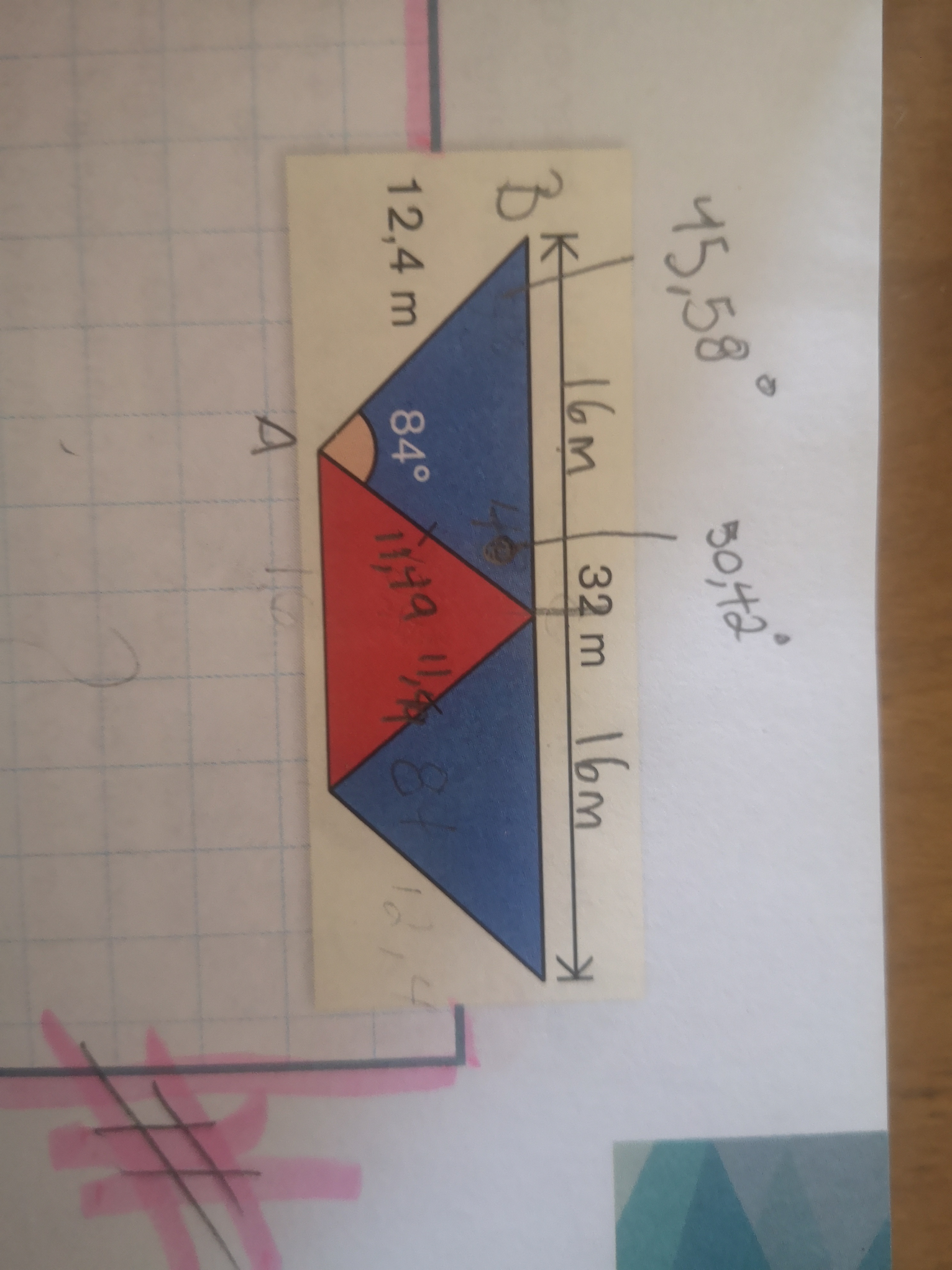 Secondaire 4 • 3aBonjour, j'ai déjà demandé de l'aide sur ce numéro je suis désolé... Mais à partir de la je reste encore bloqué, je comprend pas comme je peu trouvé la dernière mesure du triangle rouge, sinon après je sais que je peu prendre par exemple la loi héron... Quelqu'un peu encore m'aider svp? 😅