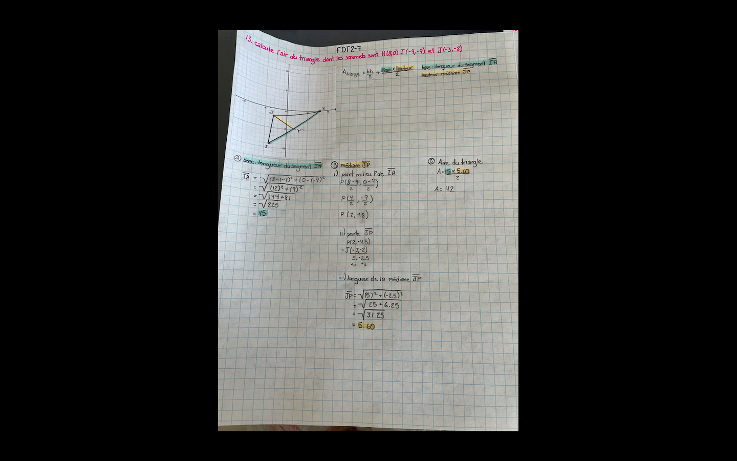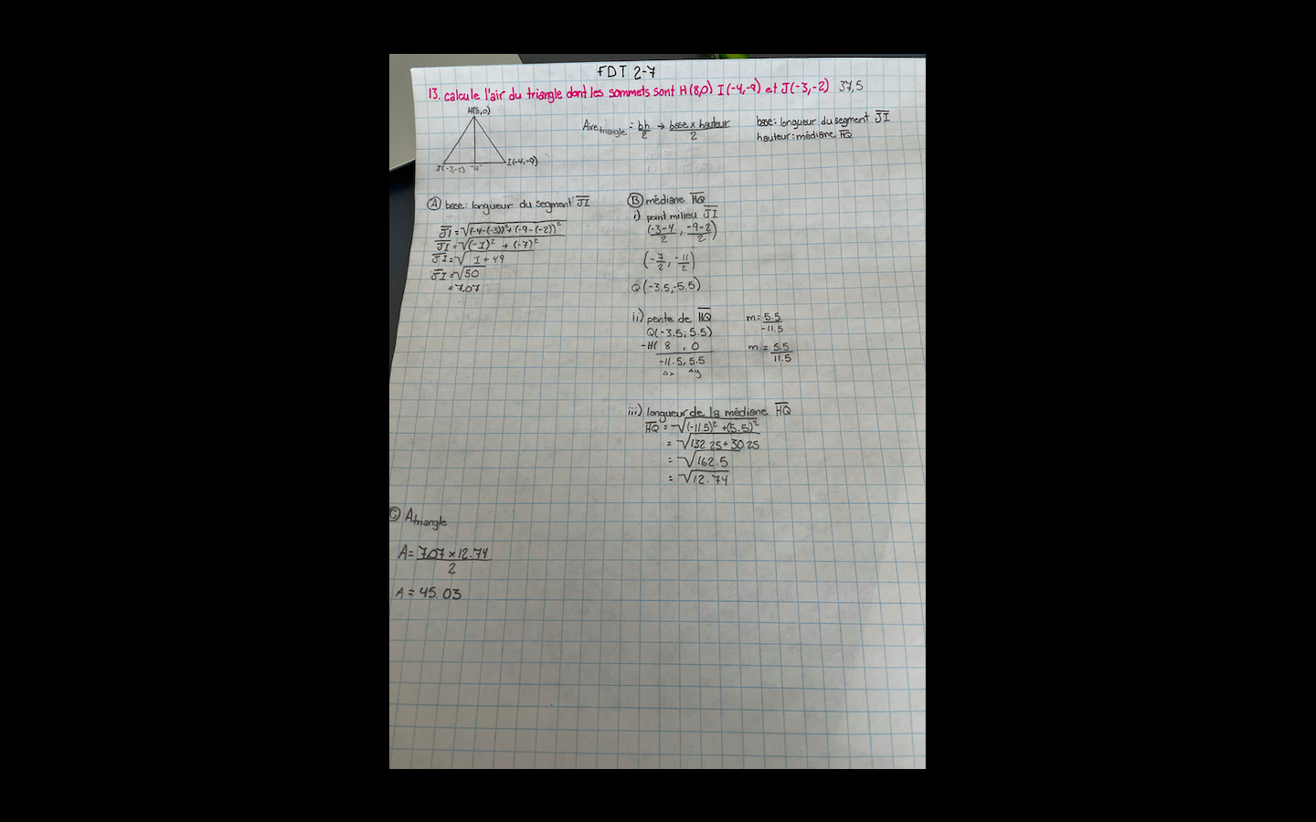 Secondaire 3 • 3aVoici deux travaux fait de différentes façons pour répondre à la question en rose. La première photo ma réponse est 45,03 et la deuxième photo, c'est 42. La réponse est 37,5. Quelqu'un pourrait trouver mon erreur ou donner une différente démarche si je n'est pas bien fait?