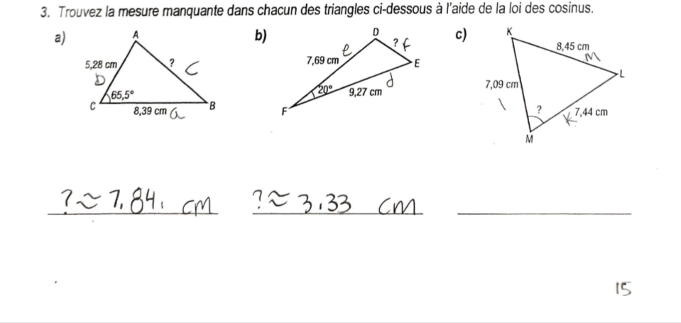 Secondaire 4 • 3aBonjour, j'ai essayer le numéro 3 c) plusieurs fois mais j'arrive jamais à la bonne réponse. Est-ce que vous pouvez m'aider ?