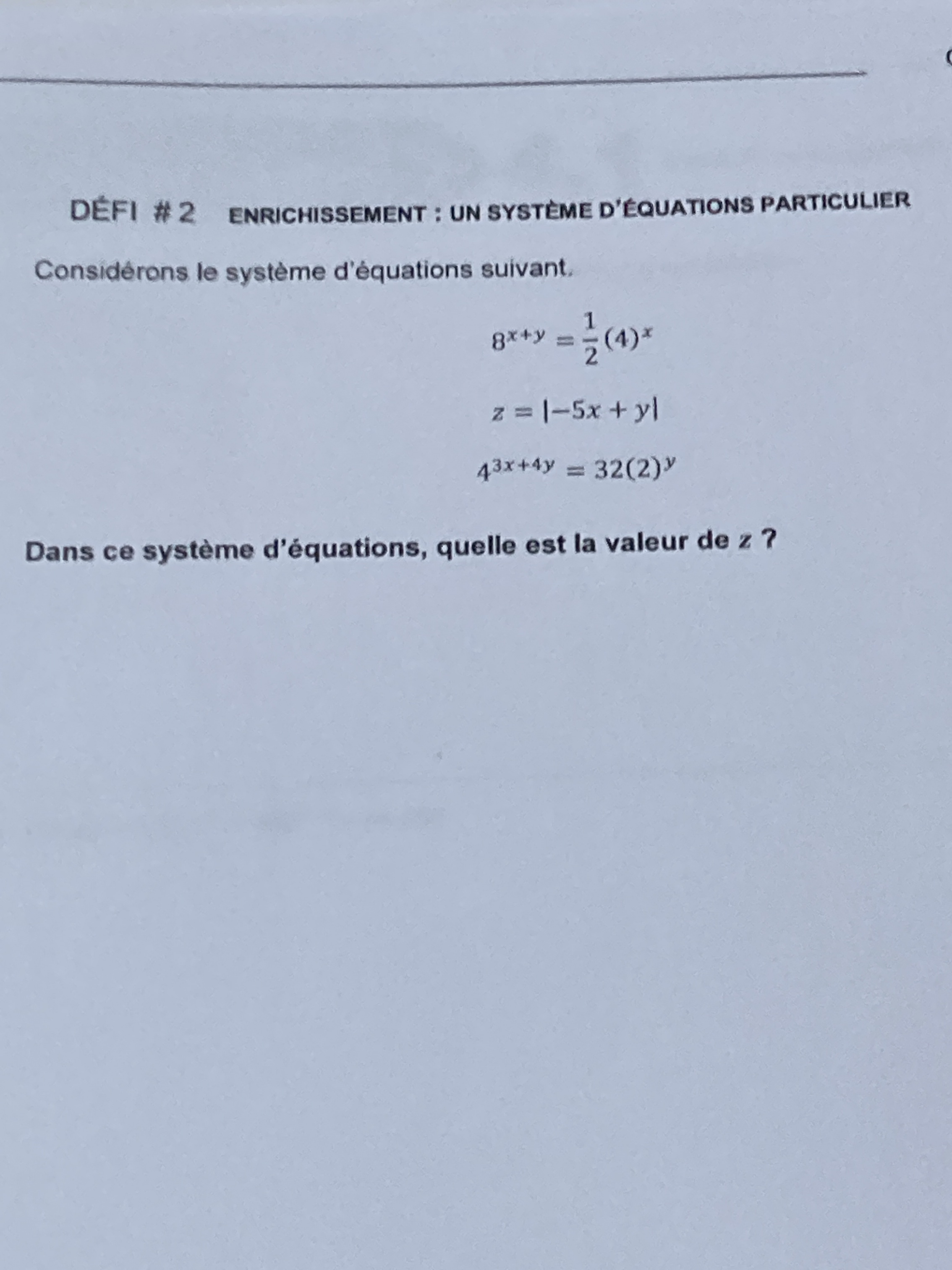 Secondaire 5 • 3aJe ne sais pas comment trouver la valeur de z