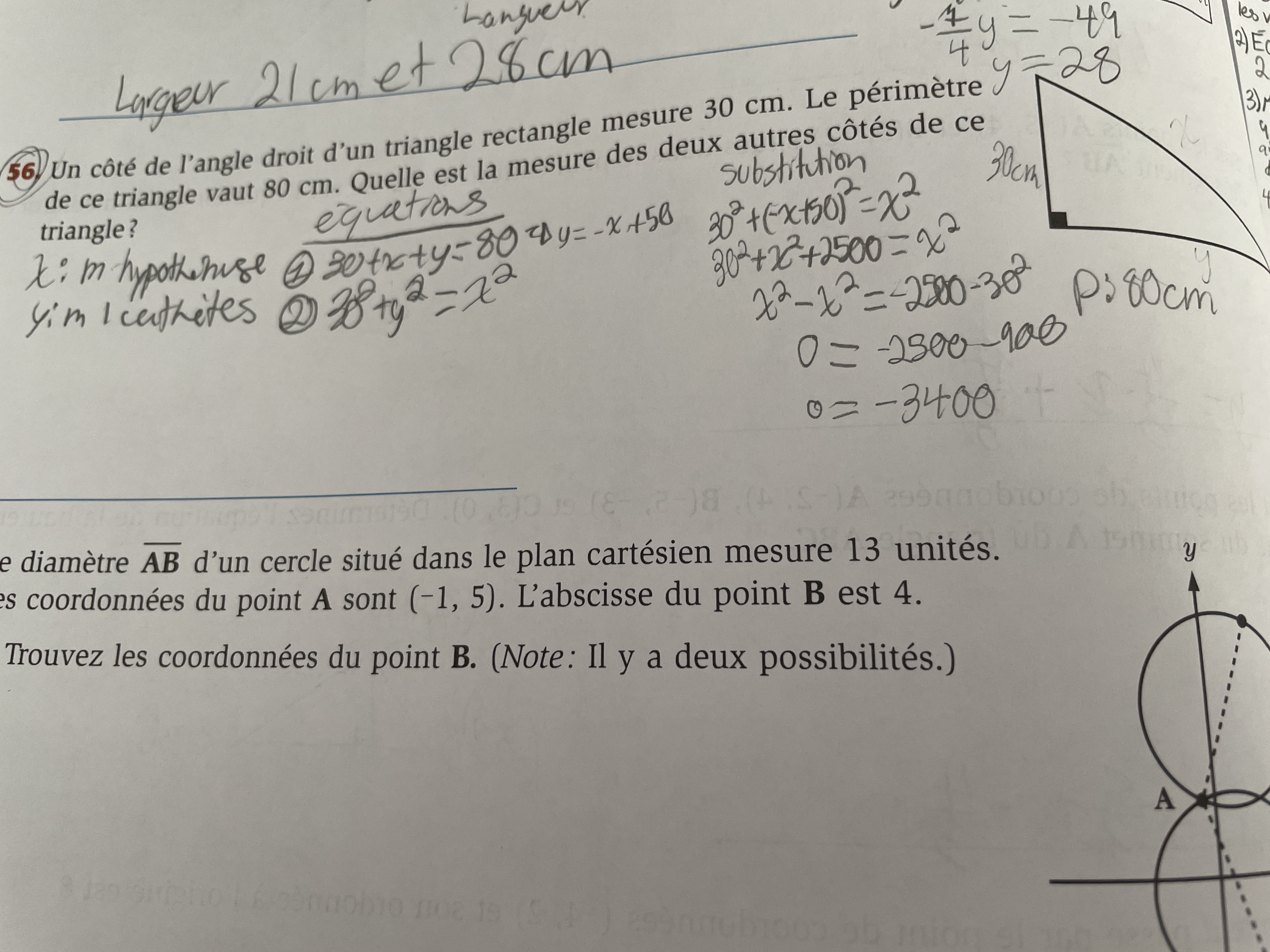 Secondaire 4 • 3aJe me demande quoi faire quand une substitution donne 0 est ce que mon calcul est incorrect? J’ai trouvé les équations mais lors de la substitution je ne sais pas si ça marche