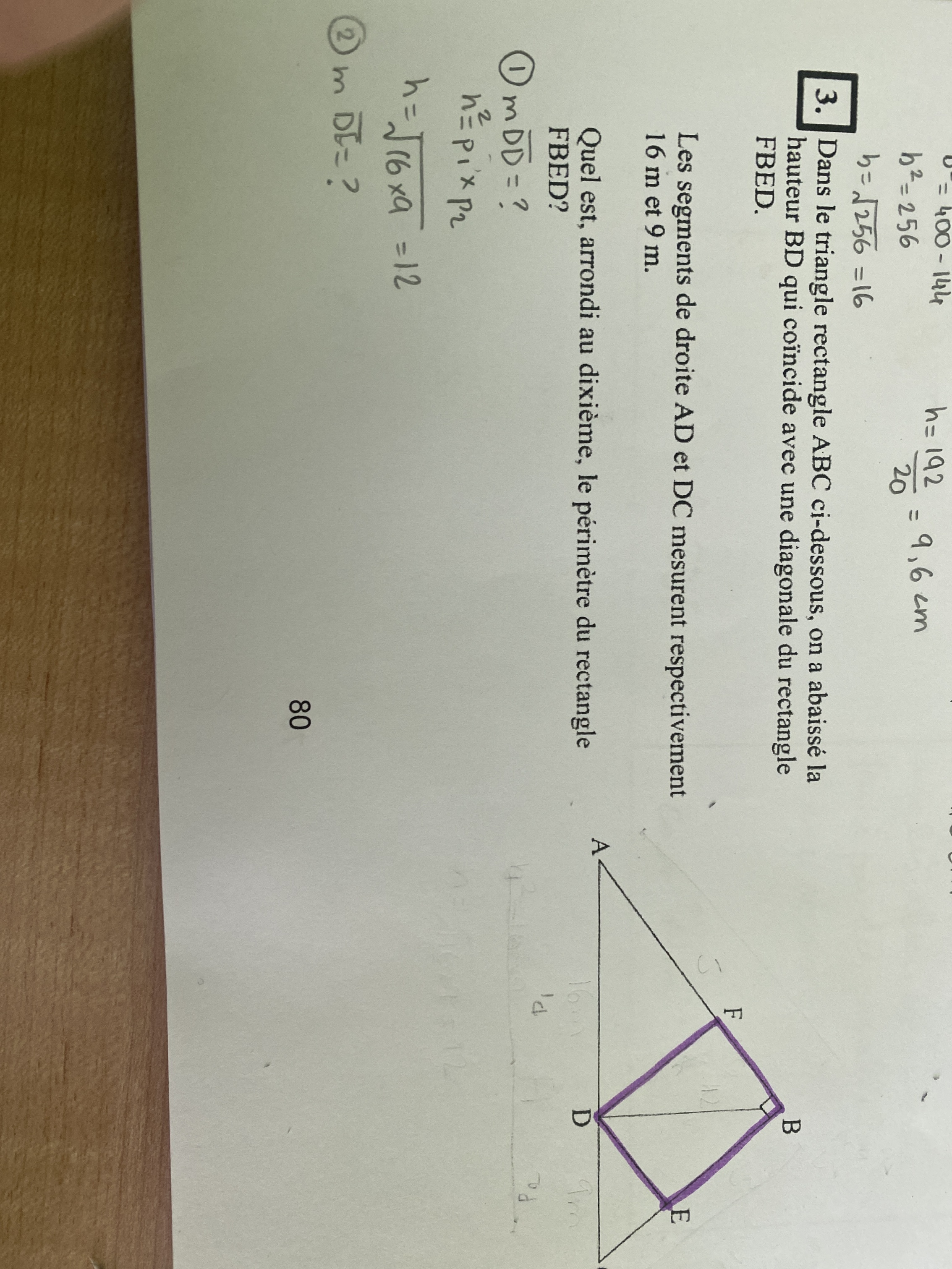 comment est-ce qu’on peut résoudre cette question et trouver la réponse à l’aide des elations métriques dans les triangles rectangle ? svp