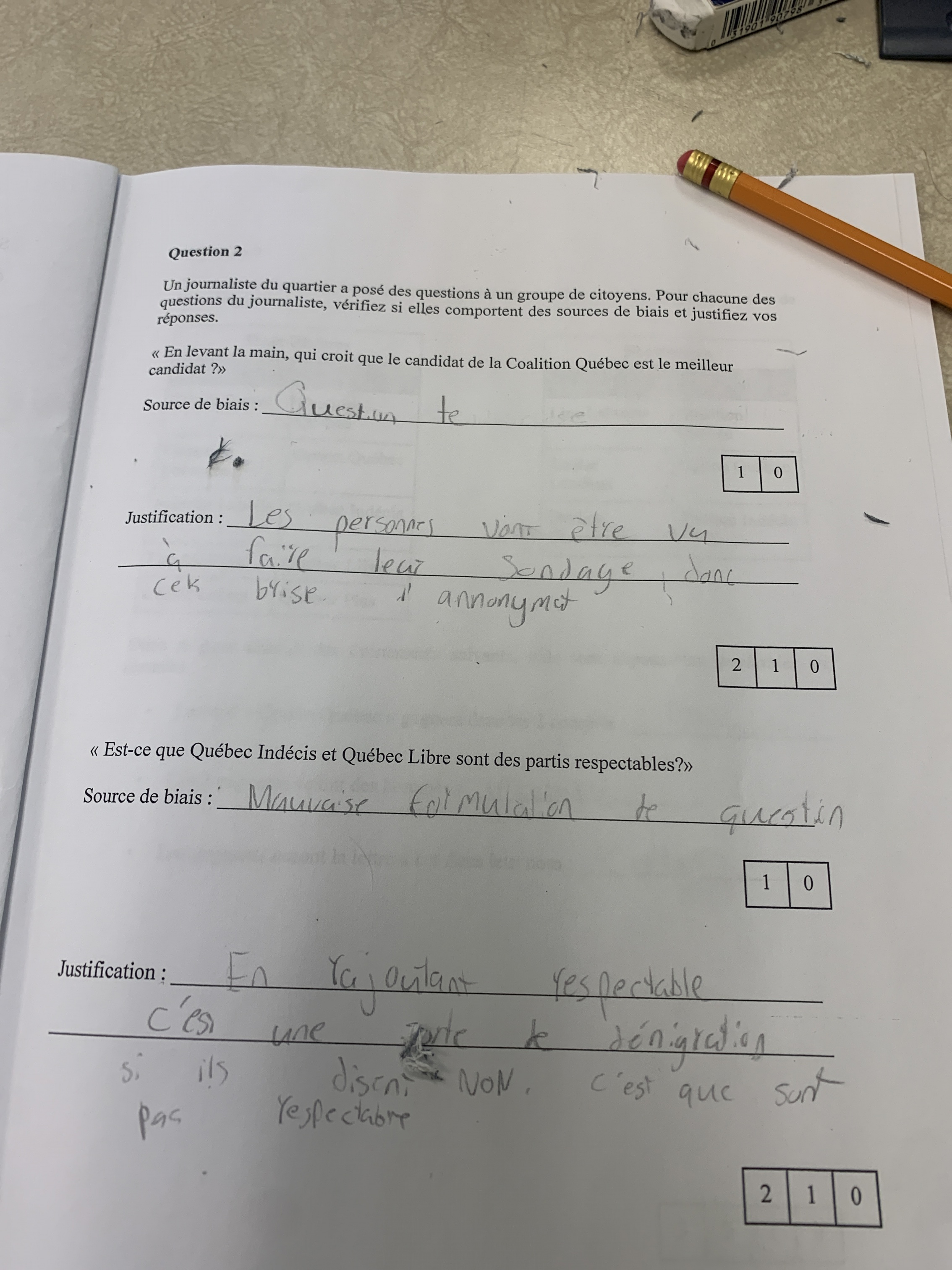 Secondaire 1 • 3aSalut j’ai encore besoin d’aide pour les question et source de biais