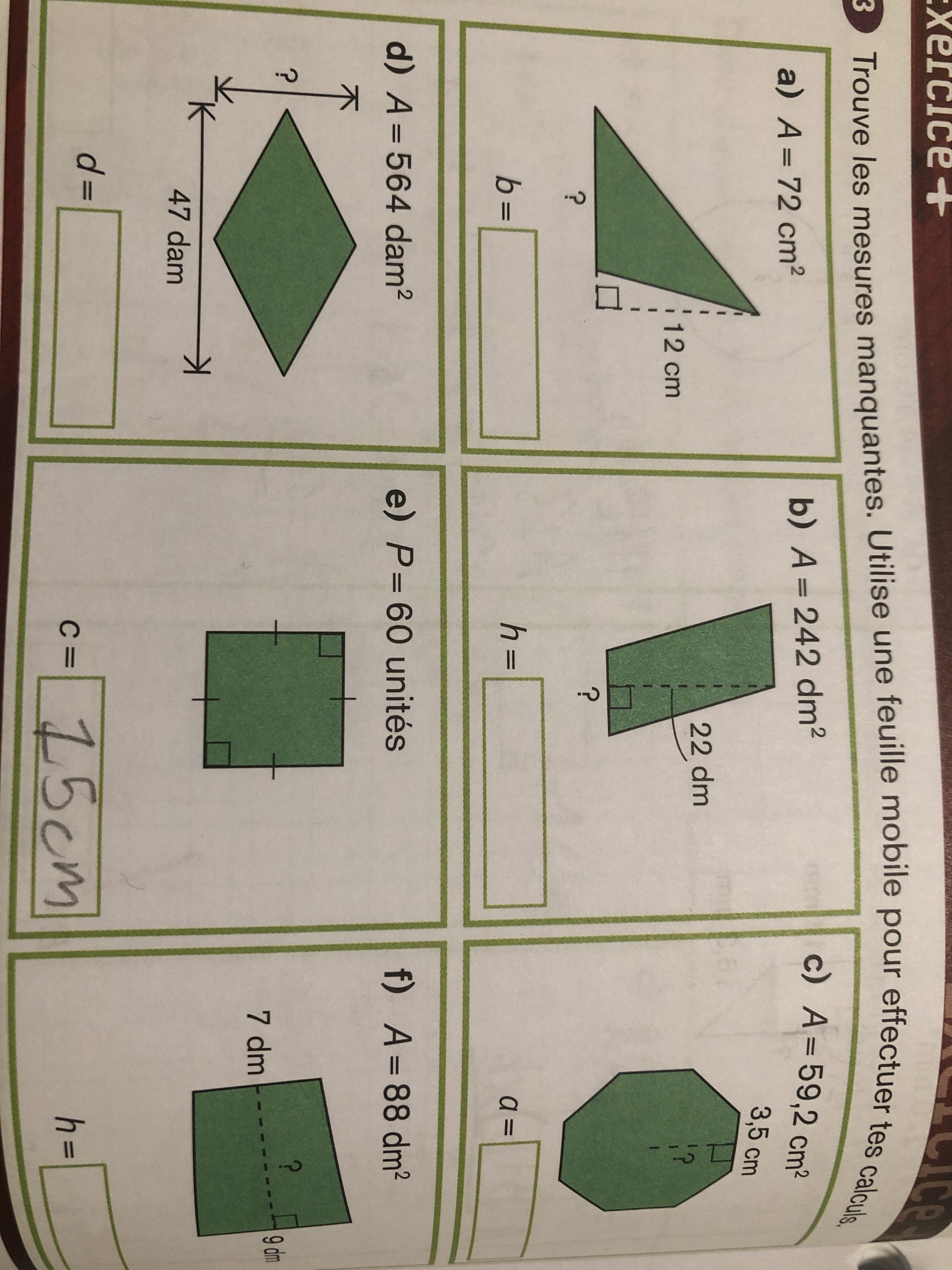 Secondaire 4 • 4aBonjour, je suis coincé a cette endroit? Quel est le reste de ma formule pour trouver l’aire?