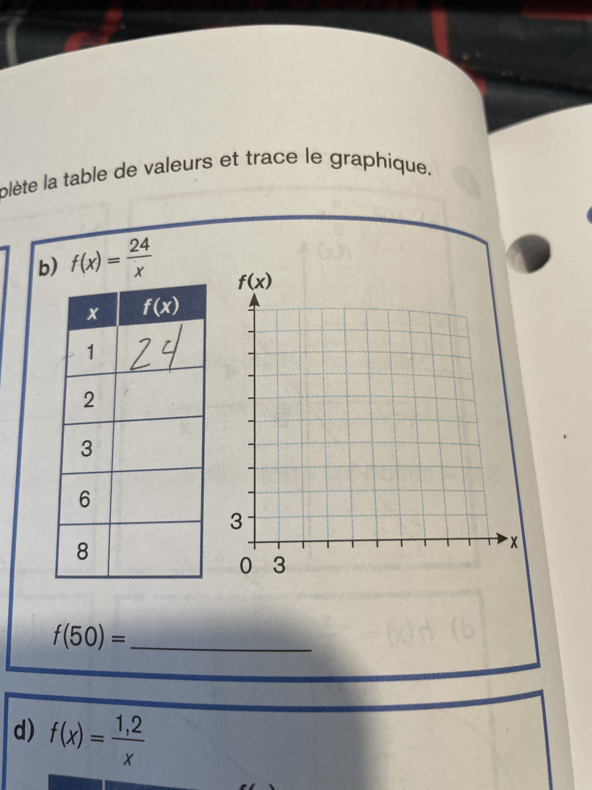 Secondaire 3 • 4asaut, je ne comprend pas comment trouver le f(50) à la fin. La question est, À partir de chacune des règles suivante, complète la table de valeurs et trace le graphique. Trouve ensuite f(50).Merci