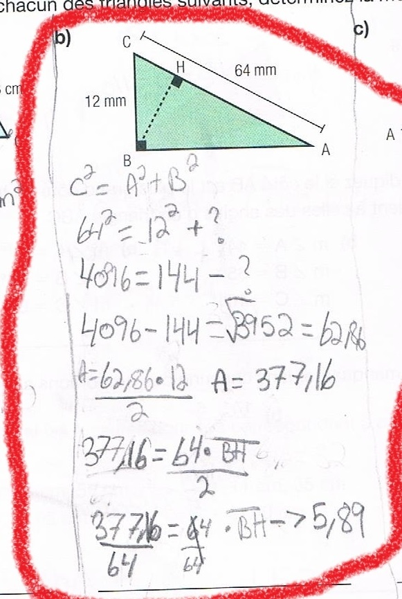 Depuis que ma classe et moi avons commencé la recherche des mesures manquantes, c'est la catastrophe. Je ne comprends rien et j'ai souvent de la difficulté en mathématique depuis longtemps.