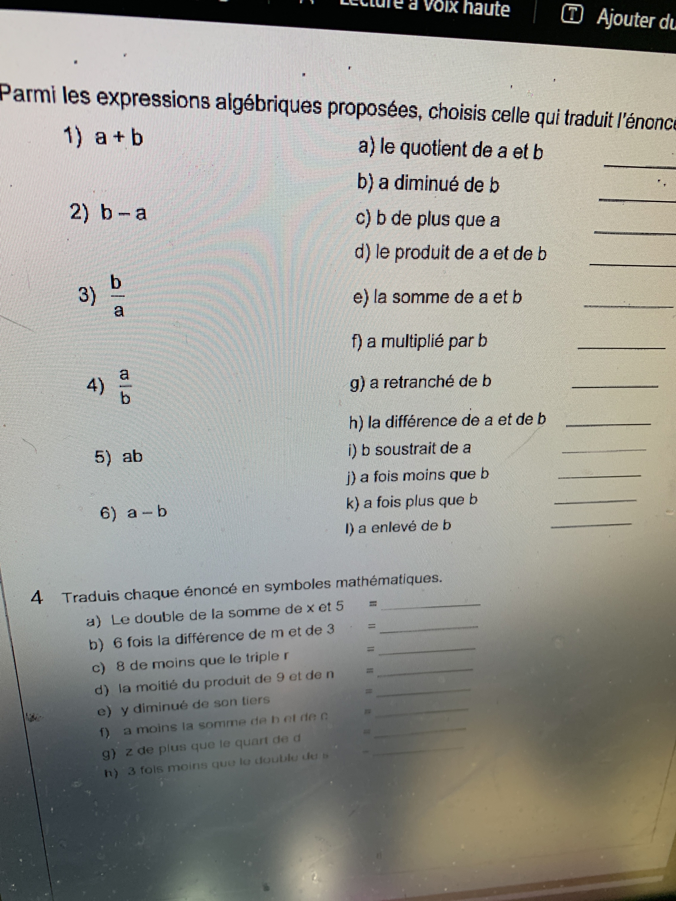 J'aurais également besoin de travaux a faire pour de la pratique ave les solutions, afin de pouvoir aider mon fils.