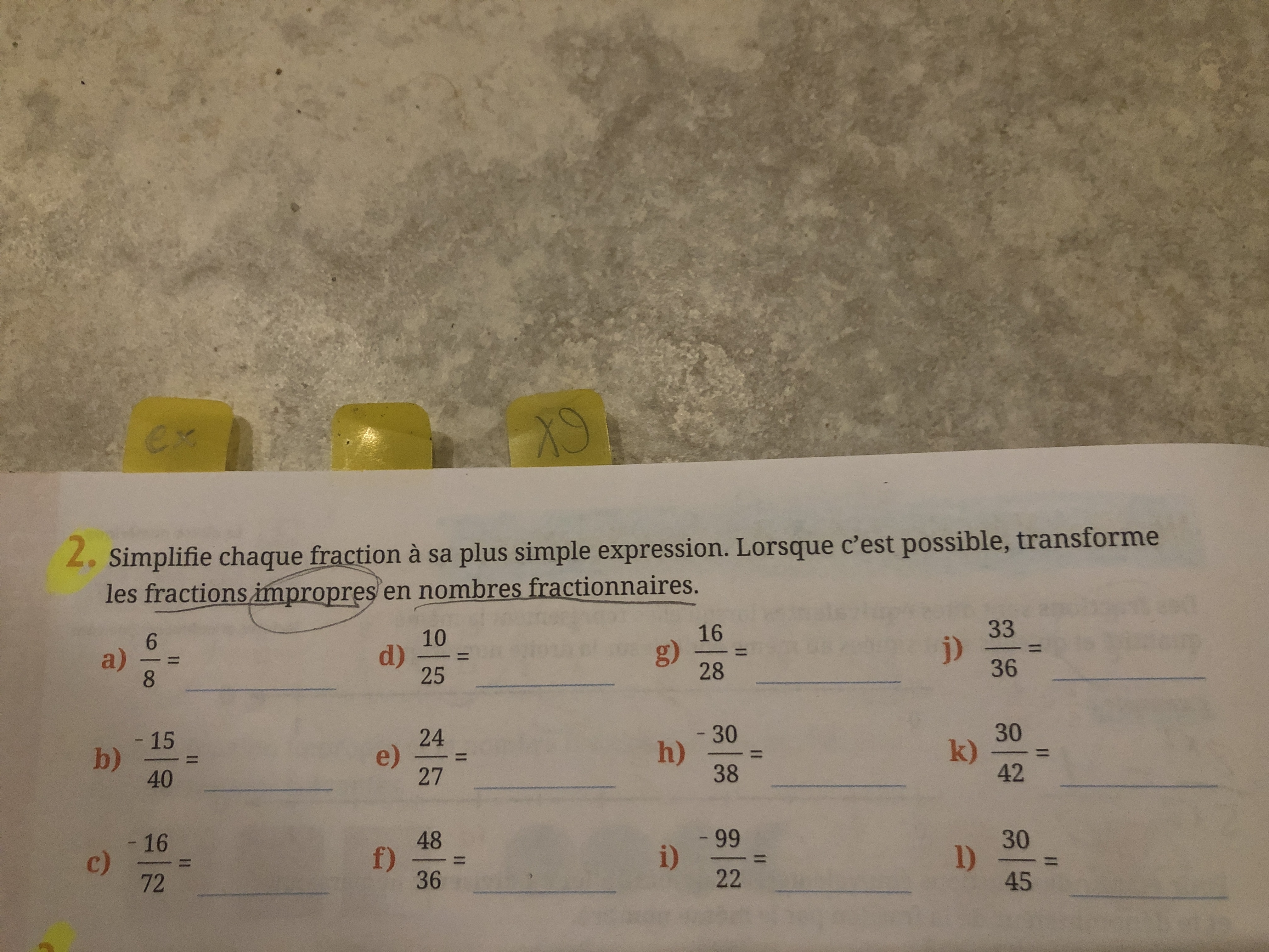 Secondaire 1 • 4aj'ai une difficulté avec ces fraction :