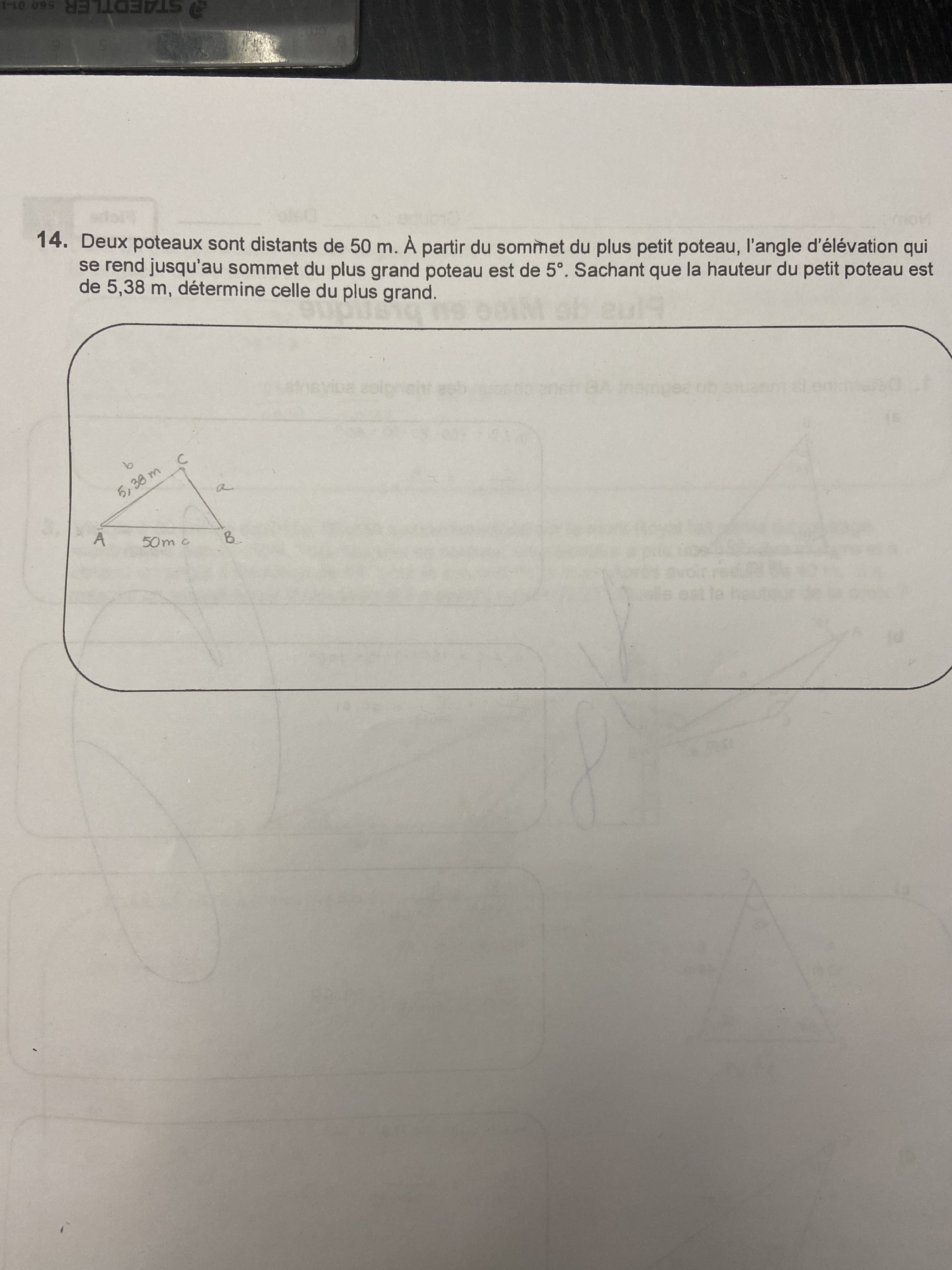 je comprend pas comment dessiner mon triangle , par contre je sais que je dois utiliser la loi des sinus pour trouver l’hauteur
