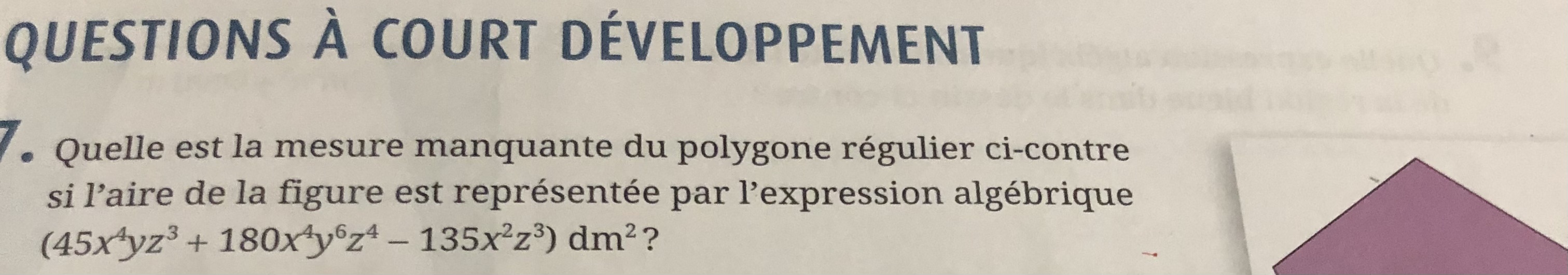 Secondaire 4 • 4aBonjour, voici un de mes numéros de mon devoir je n'ai pas la bonne réponse et je ne pense pas que ma démarche est correct.Merci